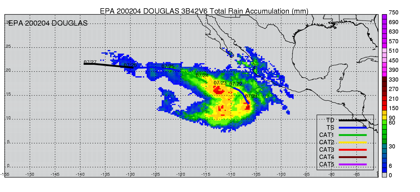 | 4 | 200204 | DOUGLAS | 20020721 - 20020726 | 970 | 90 | 11 | 58 | snapshots | rain accumulation |