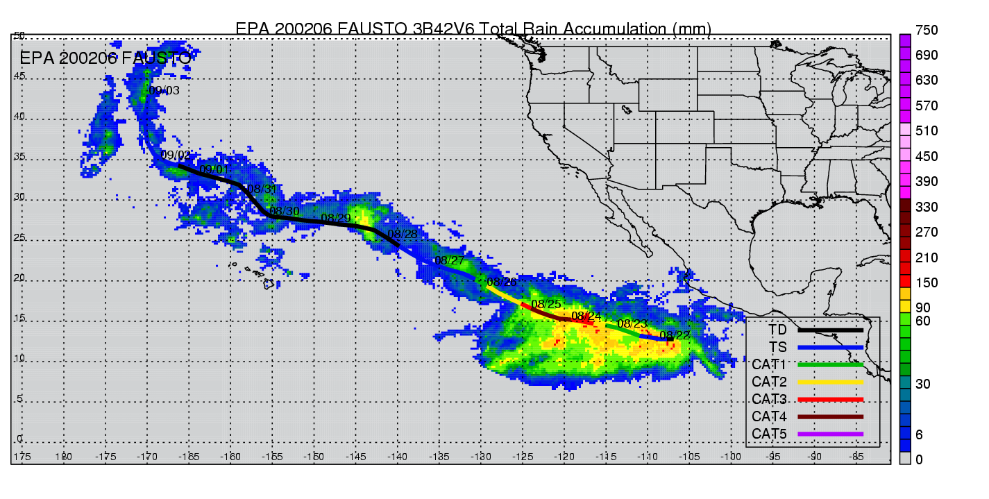 | 6 | 200206 | FAUSTO | 20020822 - 20020902 | 936 | 125 | 32 | 210 | snapshots | rain accumulation |