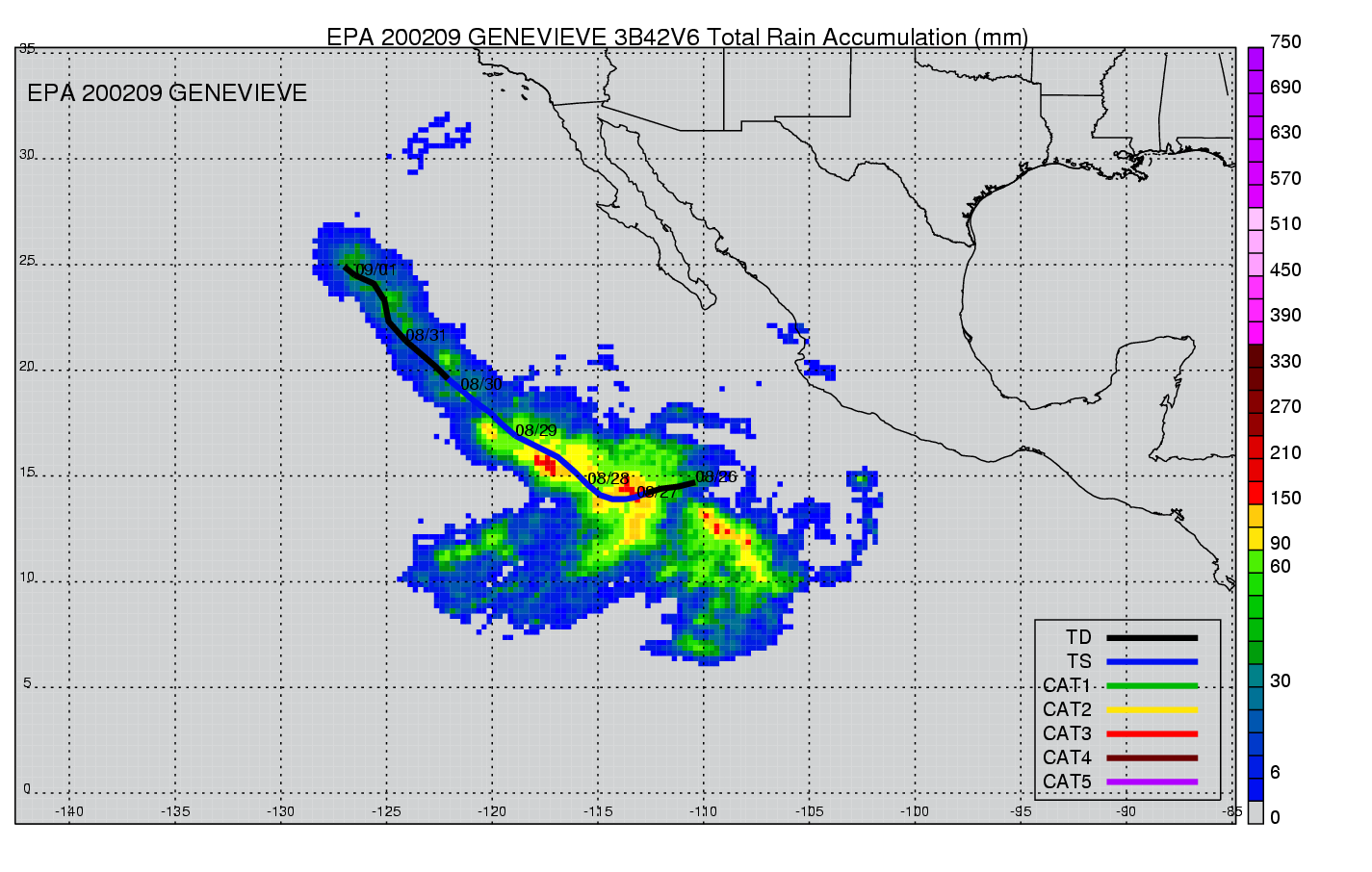 | 9 | 200209 | GENEVIEVE | 20020826 - 20020901 | 989 | 60 | 12 | 67 | snapshots | rain accumulation |