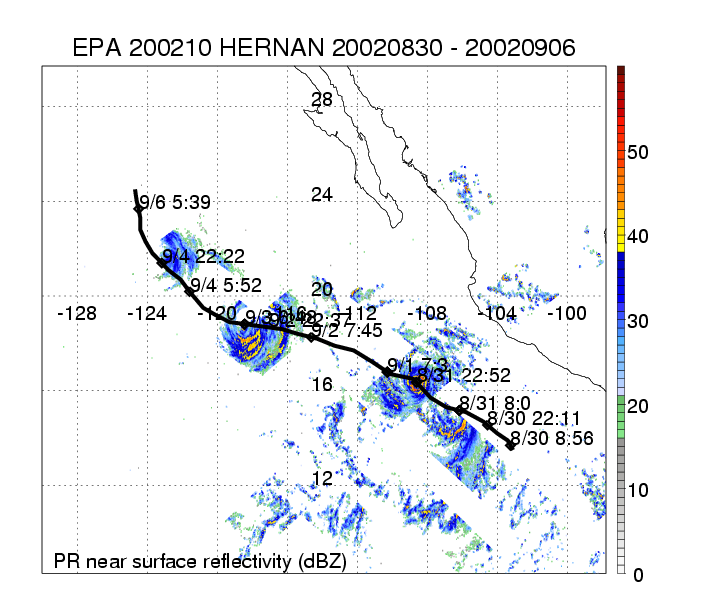 | 10 | 200210 | HERNAN | 20020830 - 20020906 | 921 | 140 | 13 | 45 | snapshots | rain accumulation |