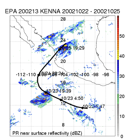 | 13 | 200213 | KENNA | 20021022 - 20021025 | 913 | 145 | 5 | 56 | snapshots | rain accumulation |
