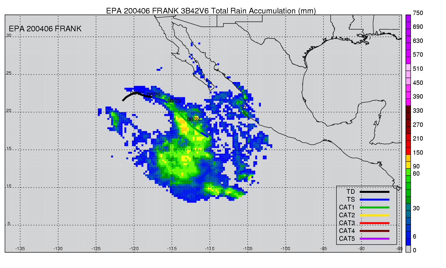 | 6 | 200406 | FRANK | 20040823 - 20040826 | 979 | 75 | 6 | 14 | snapshots | rain accumulation |