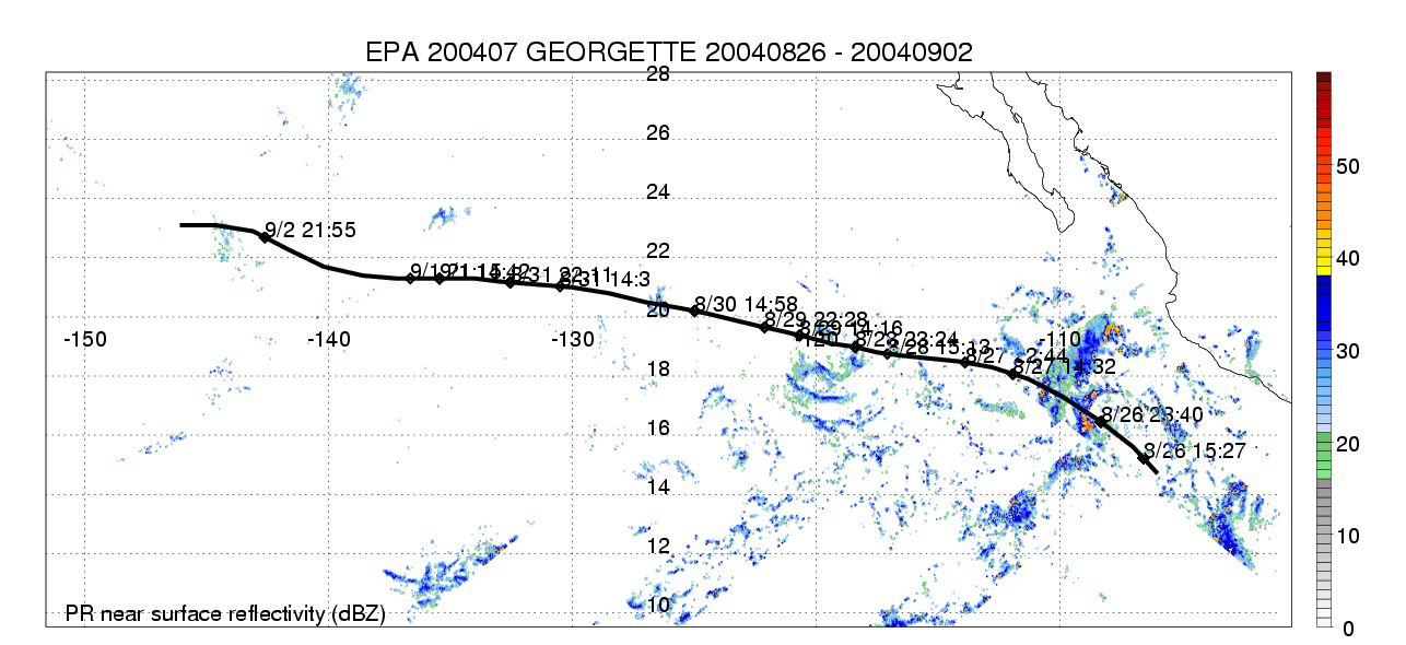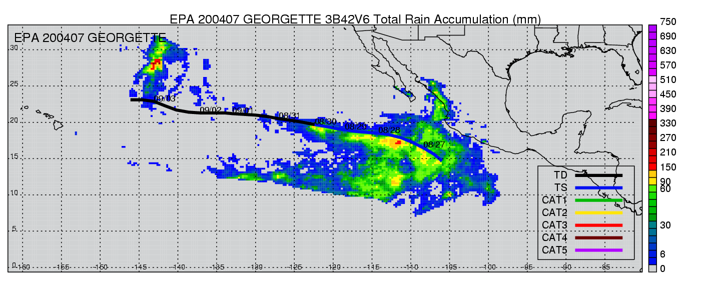 | 7 | 200407 | GEORGETTE | 20040826 - 20040902 | 995 | 55 | 15 | 105 | snapshots | rain accumulation |