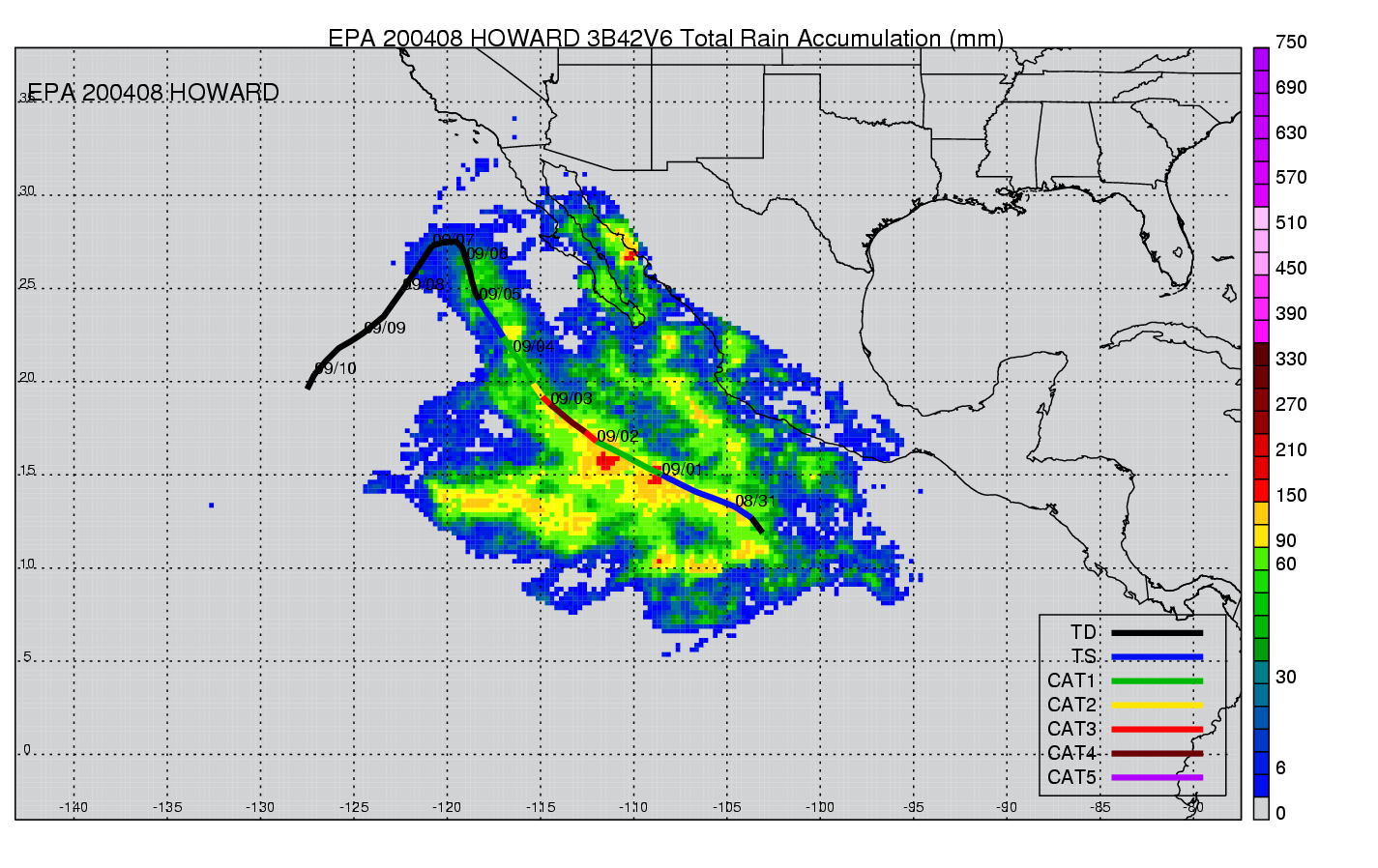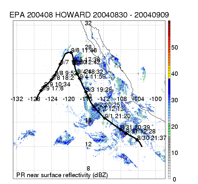 | 8 | 200408 | HOWARD | 20040830 - 20040909 | 943 | 120 | 17 | 123 | snapshots | rain accumulation |