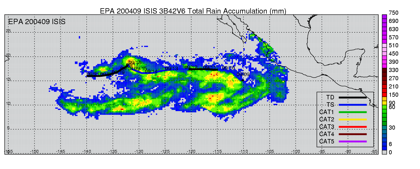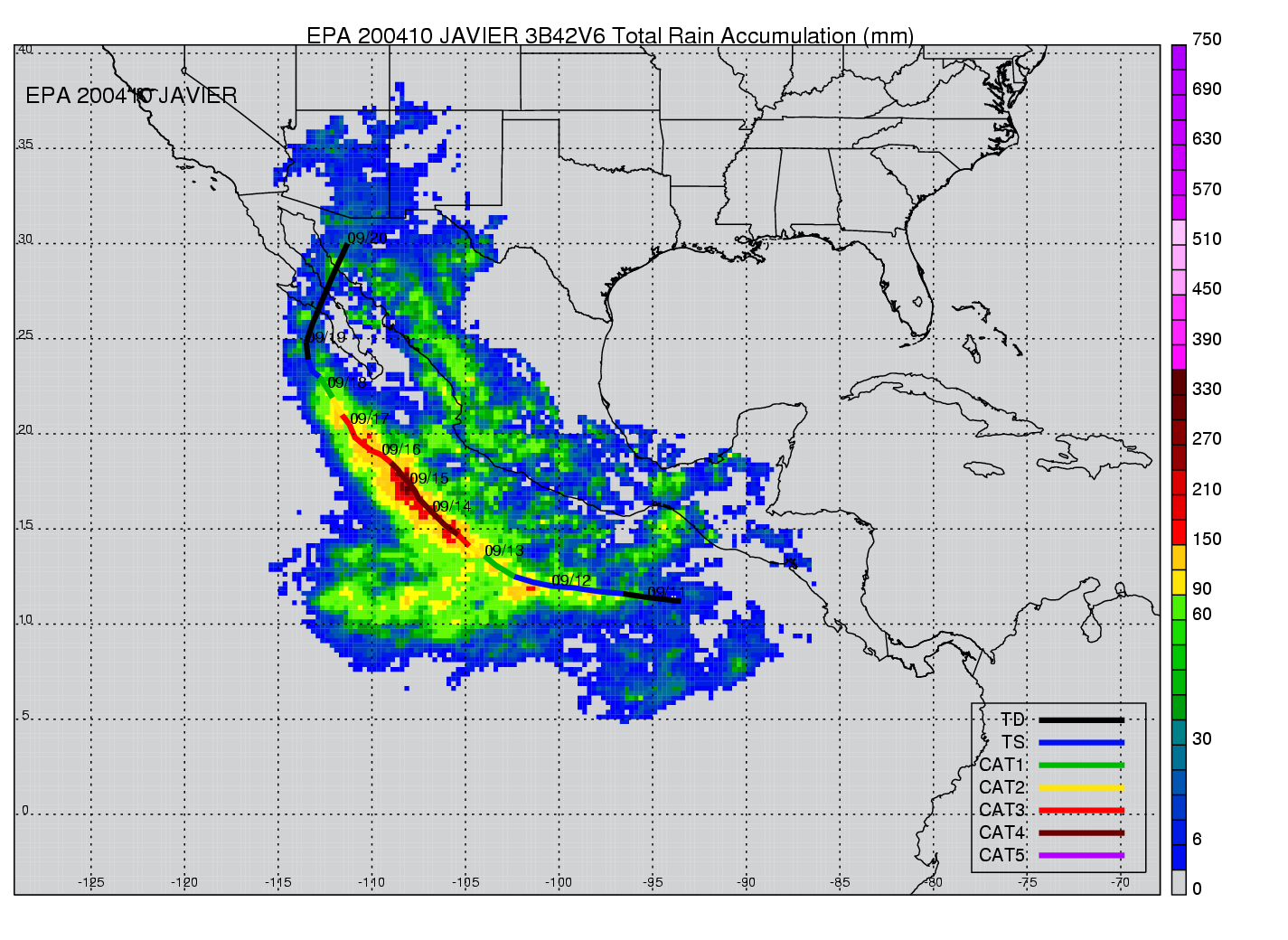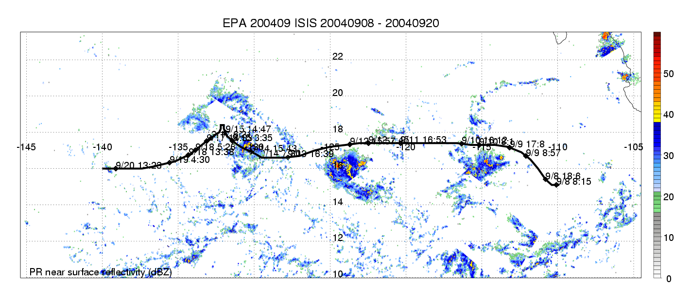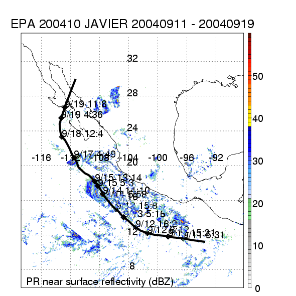 | 10 | 200410 | JAVIER | 20040911 - 20040919 | 930 | 130 | 14 | 100 | snapshots | rain accumulation |