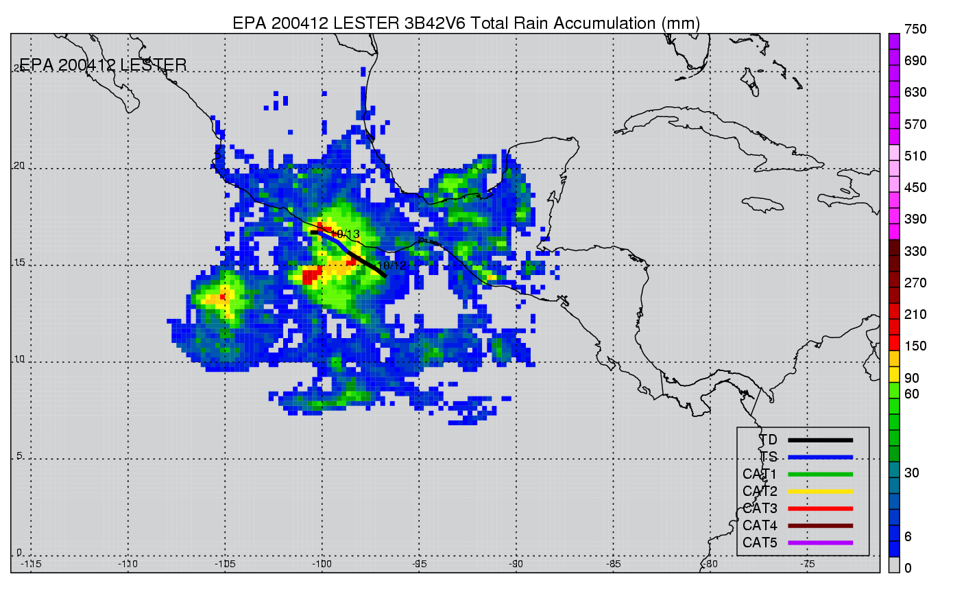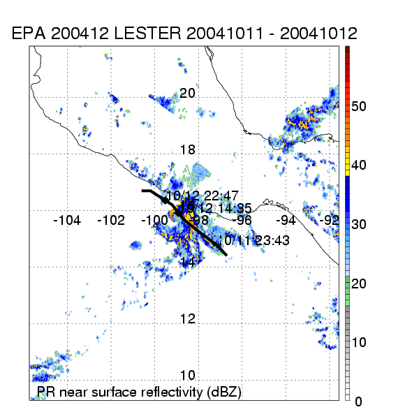 | 12 | 200412 | LESTER | 20041011 - 20041012 | 1000 | 45 | 3 | 36 | snapshots | rain accumulation |