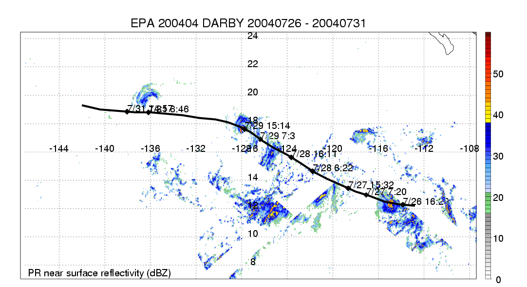 | 4 | 200404 | DARBY | 20040726 - 20040731 | 957 | 105 | 11 | 77 | snapshots | rain accumulation |
