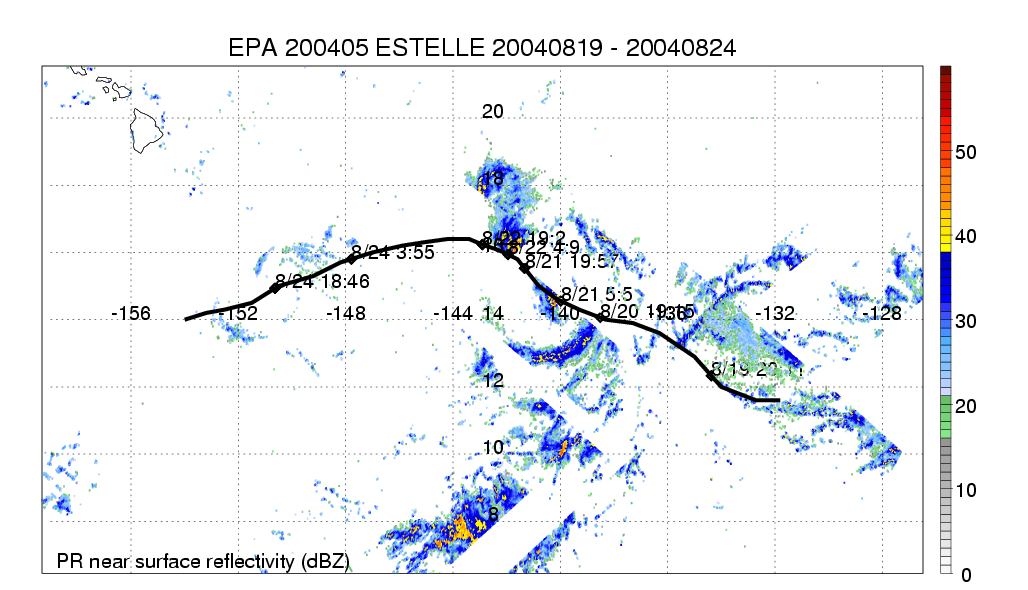 | 5 | 200405 | ESTELLE | 20040819 - 20040824 | 989 | 60 | 8 | 39 | snapshots | rain accumulation |