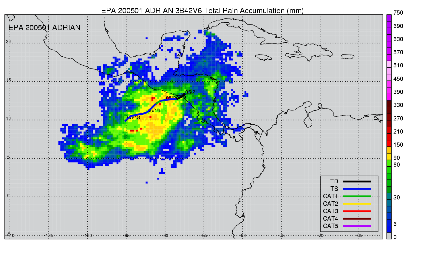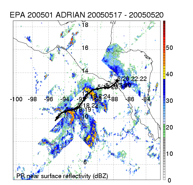| 1 | 200501 | ADRIAN | 20050517 - 20050520 | 983 | 70 | 7 | 31 | snapshots | rain accumulation |