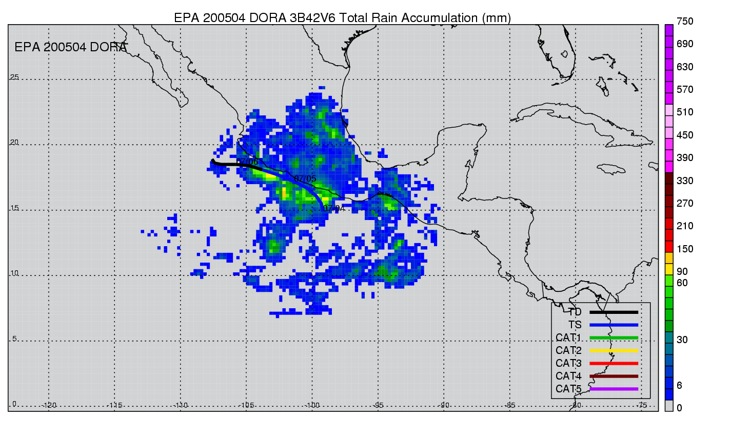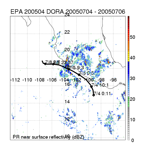 | 4 | 200504 | DORA | 20050704 - 20050706 | 1002 | 40 | 6 | 56 | snapshots | rain accumulation |