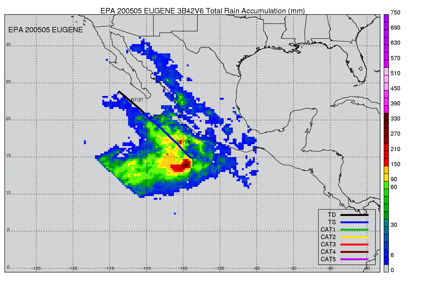 | 5 | 200505 | EUGENE | 20050719 - 20050721 | 989 | 60 | 5 | 26 | snapshots | rain accumulation |