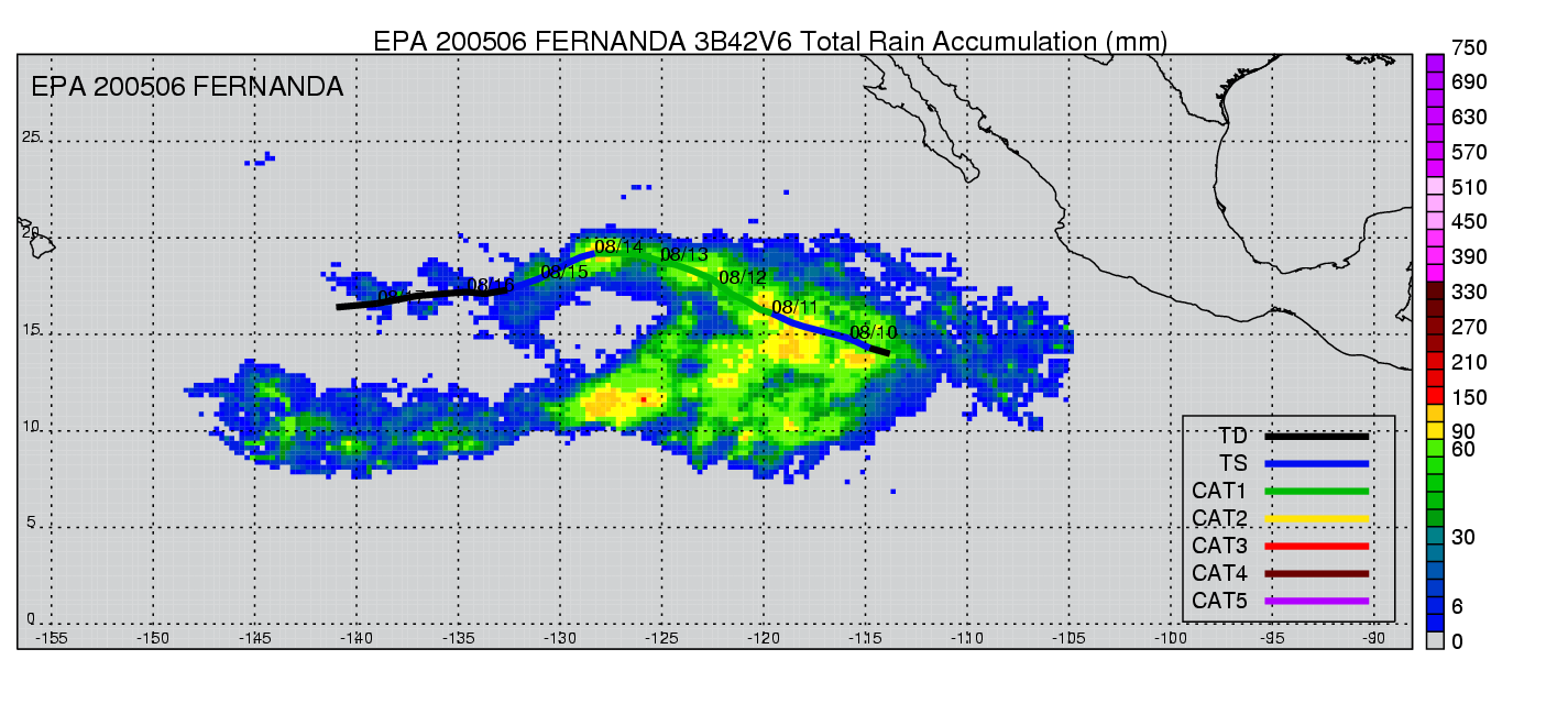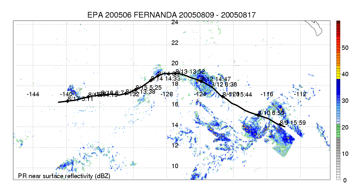| 6 | 200506 | FERNANDA | 20050809 - 20050817 | 978 | 75 | 13 | 95 | snapshots | rain accumulation |