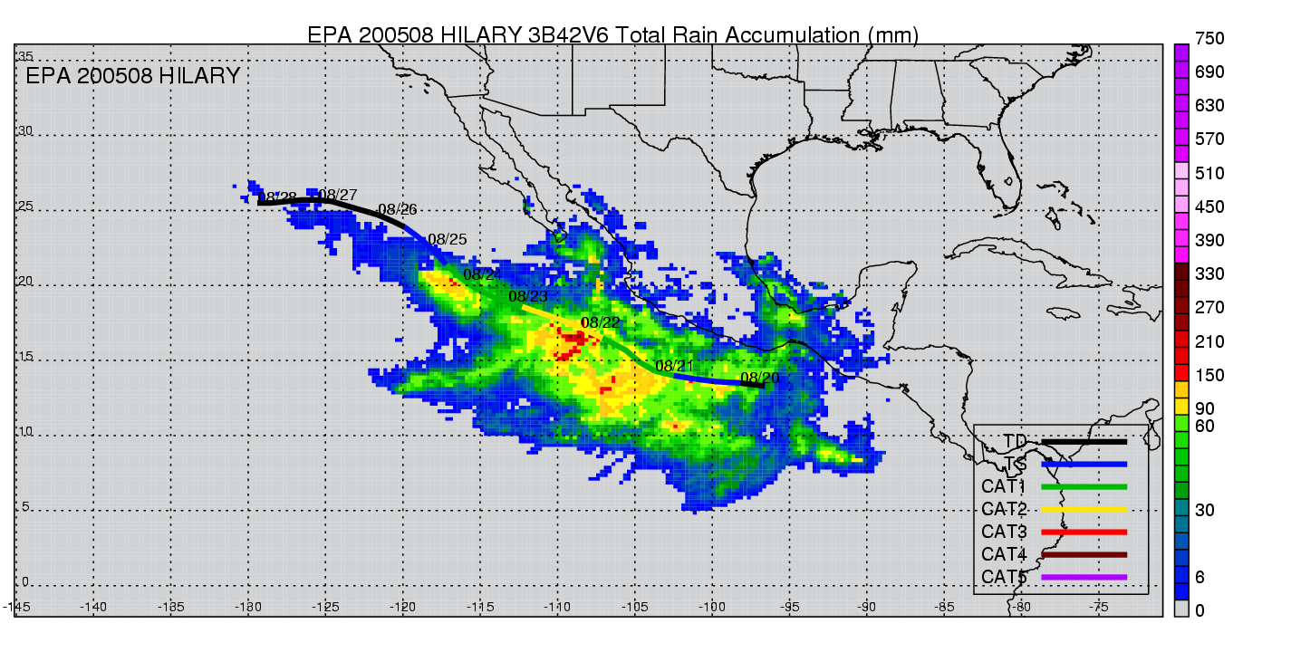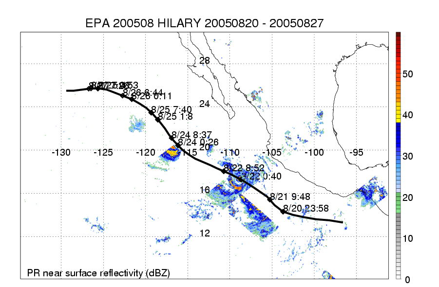 | 8 | 200508 | HILARY | 20050821 - 20050827 | 970 | 90 | 14 | 82 | snapshots | rain accumulation |