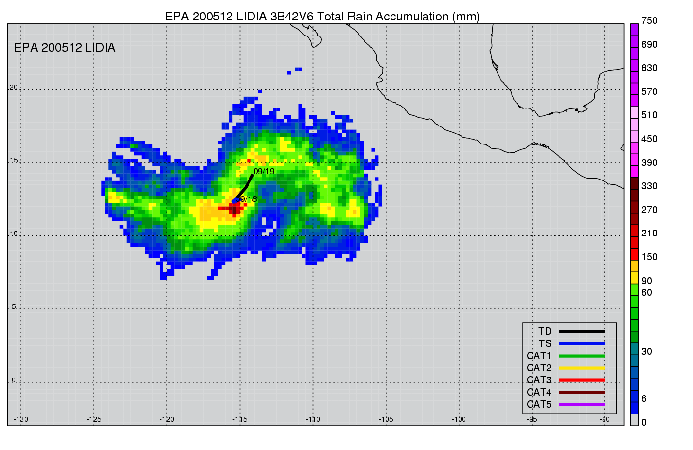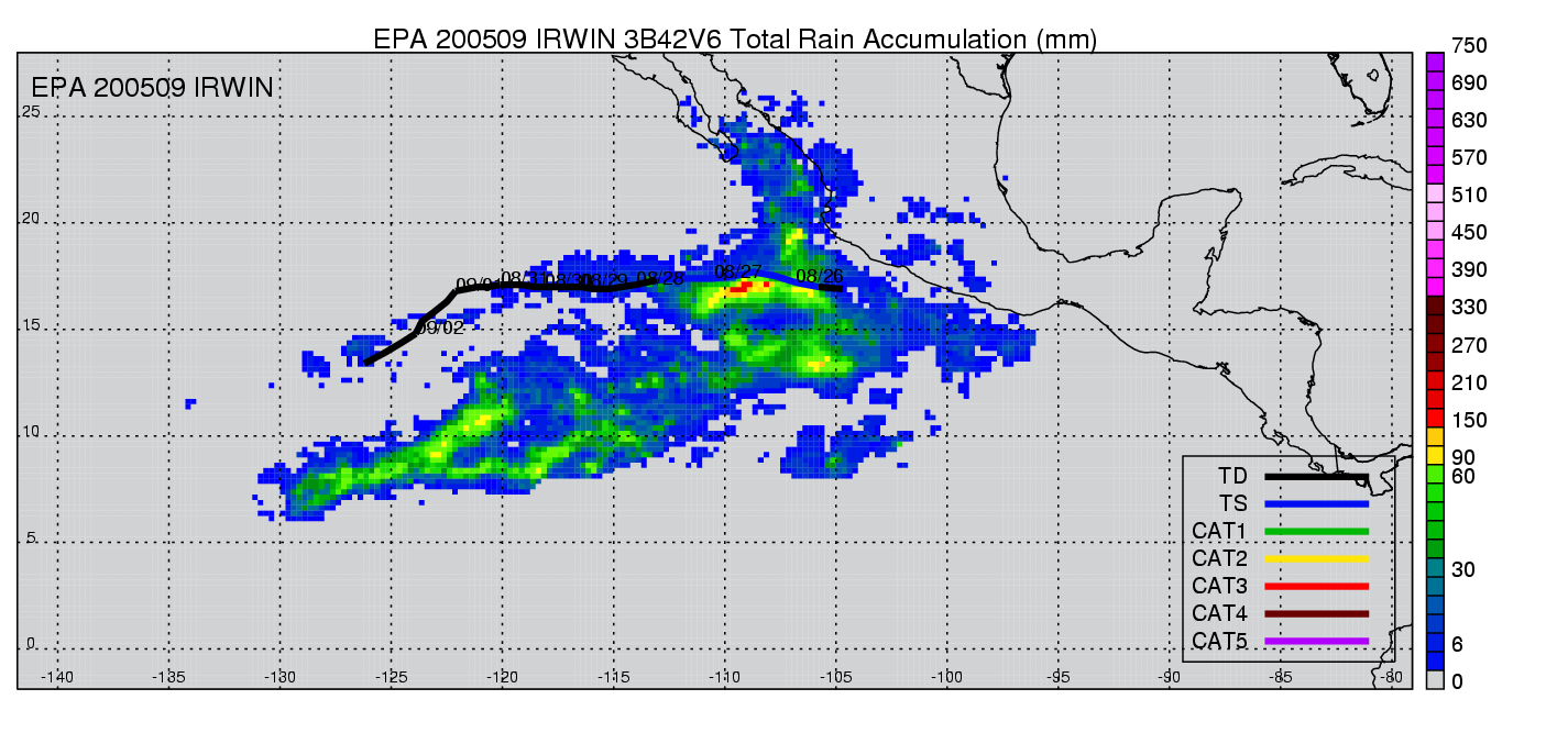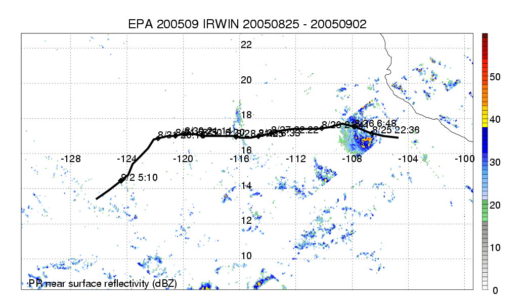 | 9 | 200509 | IRWIN | 20050825 - 20050902 | 1000 | 45 | 12 | 79 | snapshots | rain accumulation |