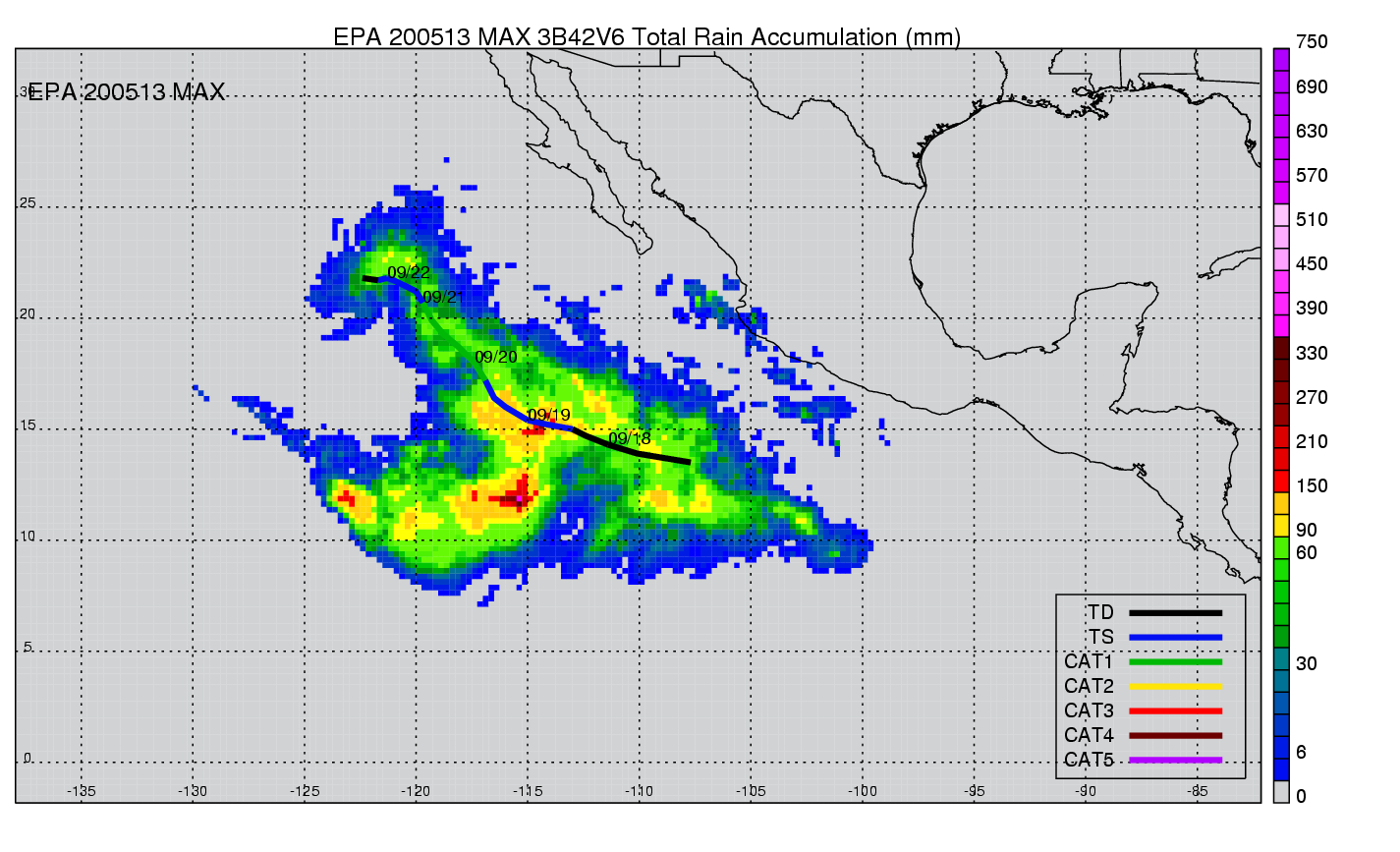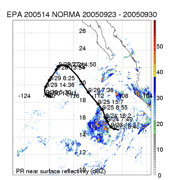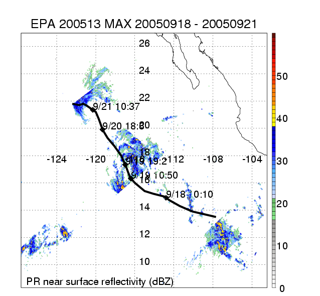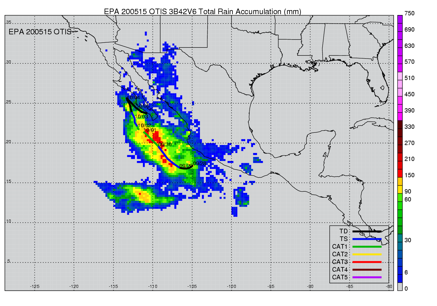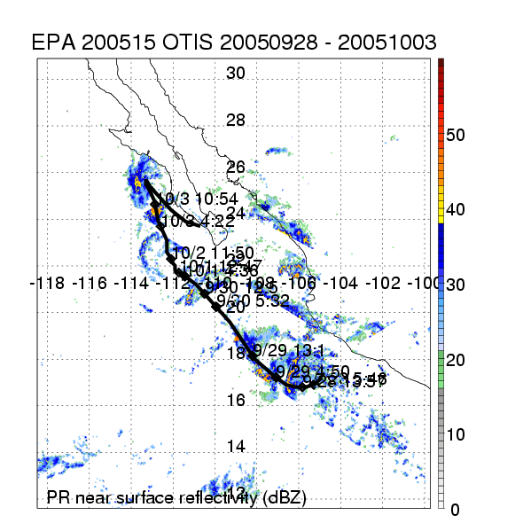 | 15 | 200515 | OTIS | 20050928 - 20051004 | 970 | 90 | 13 | 77 | snapshots | rain accumulation |