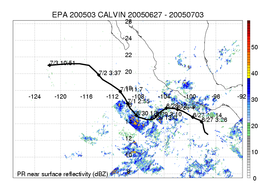 | 3 | 200503 | CALVIN | 20050627 - 20050703 | 1000 | 45 | 11 | 107 | snapshots | rain accumulation |