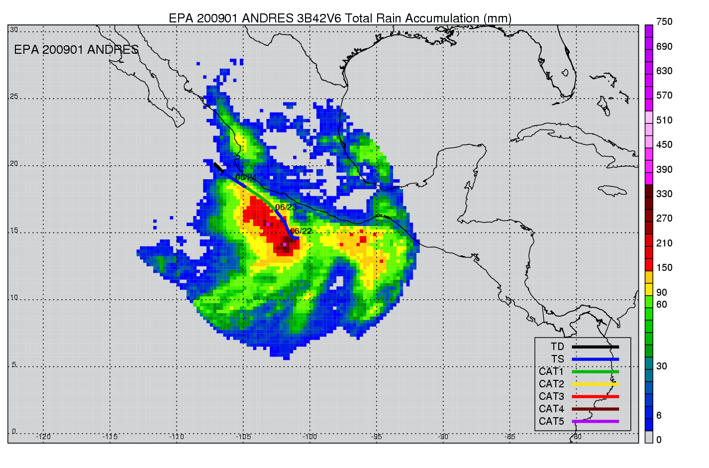 | 1 | 200901 | ANDRES | 20090621 - 20090624 | 984 | 70 | 7 | 39 | snapshots | rain accumulation |