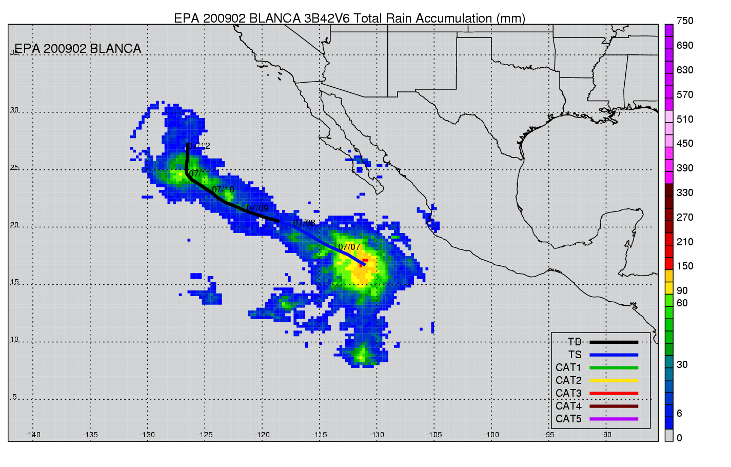 | 2 | 200902 | BLANCA | 20090706 - 20090711 | 998 | 45 | 9 | 53 | snapshots | rain accumulation |