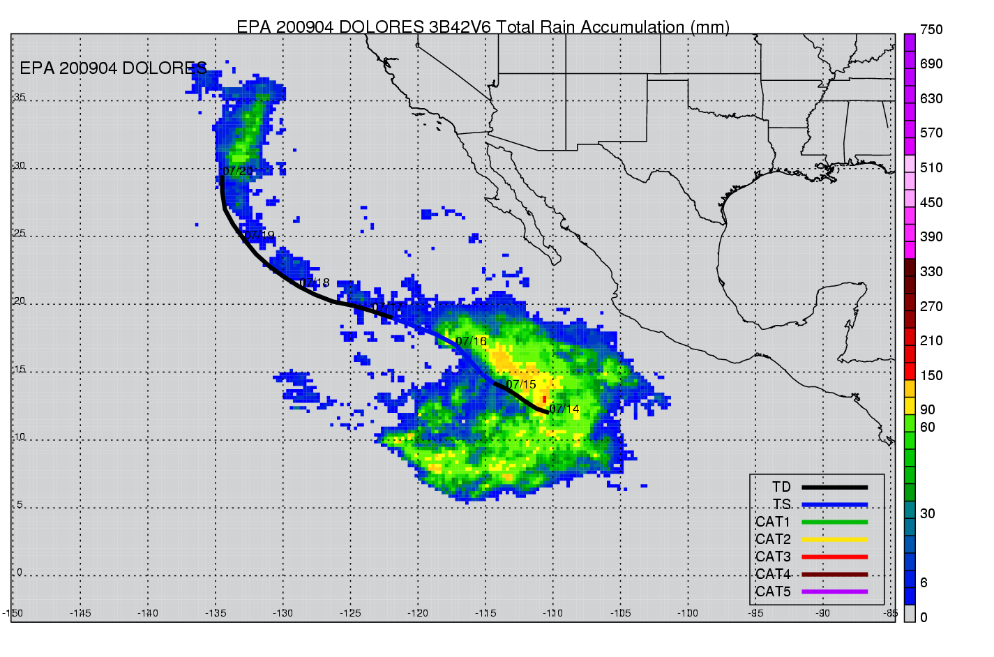 | 4 | 200904 | DOLORES | 20090714 - 20090719 | 997 | 50 | 11 | 71 | snapshots | rain accumulation |