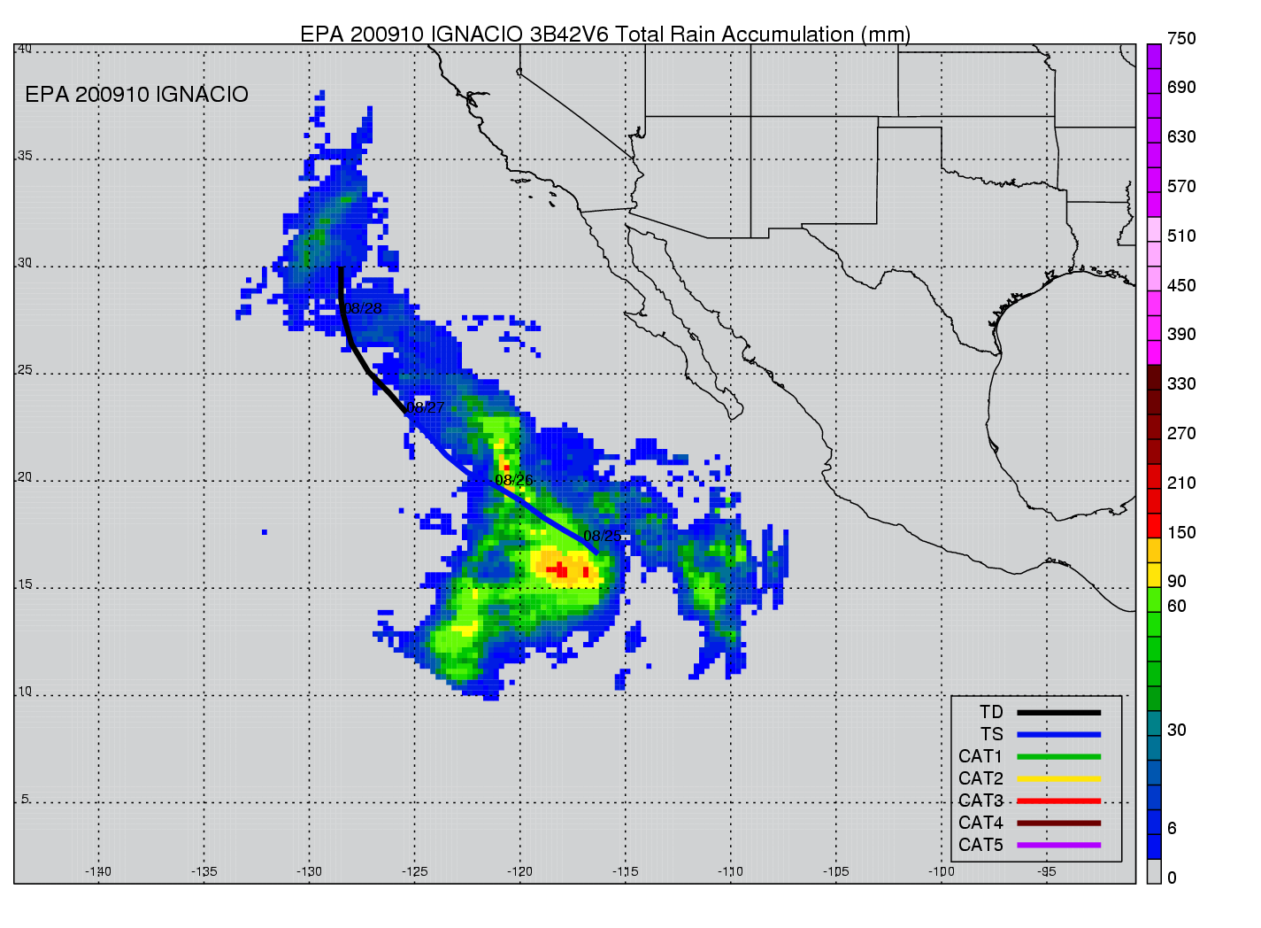 | 10 | 200910 | IGNACIO | 20090825 - 20090828 | 999 | 45 | 9 | 59 | snapshots | rain accumulation |