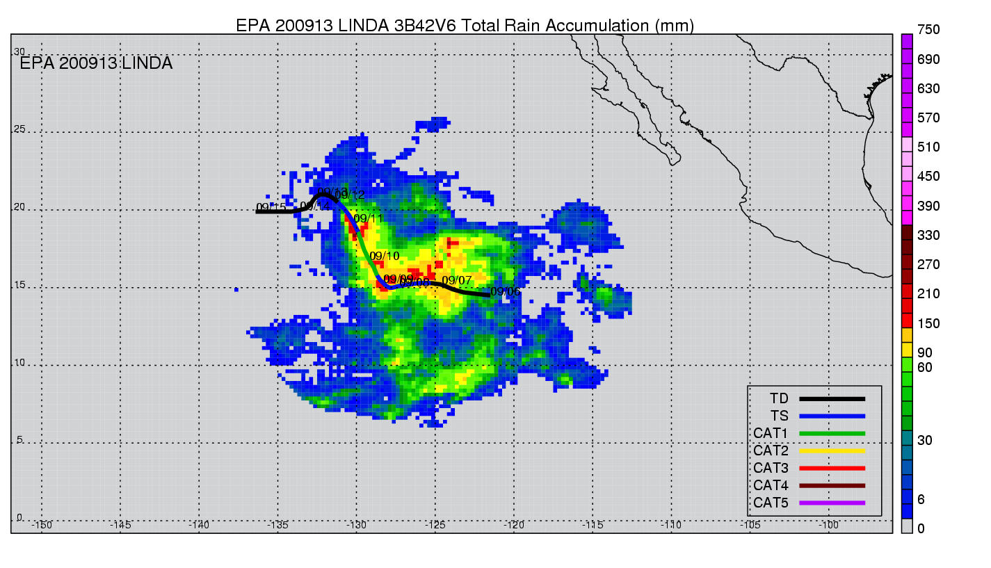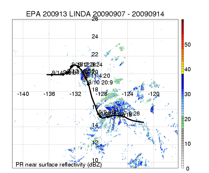 | 13 | 200913 | LINDA | 20090907 - 20090914 | 985 | 70 | 12 | 83 | snapshots | rain accumulation |