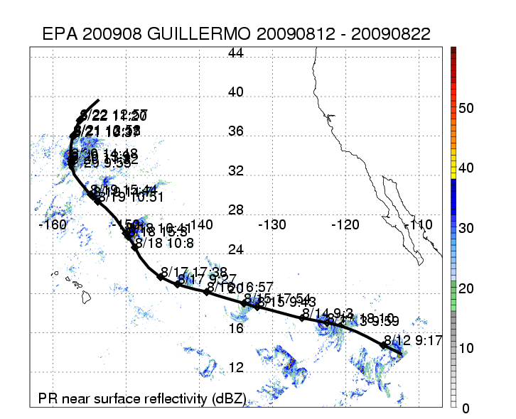 | 8 | 200908 | GUILLERMO | 20090812 - 20090822 | 954 | 110 | 24 | 127 | snapshots | rain accumulation |