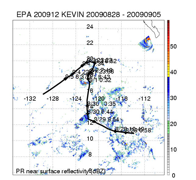 | 12 | 200912 | KEVIN | 20090828 - 20090905 | 1000 | 45 | 15 | 113 | snapshots | rain accumulation |