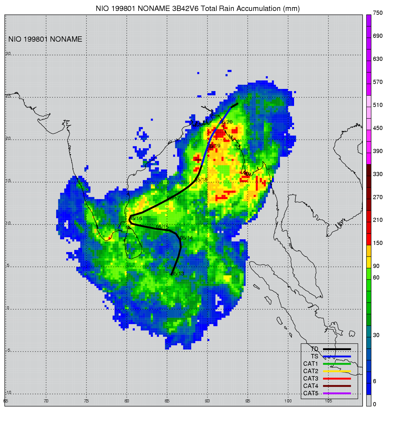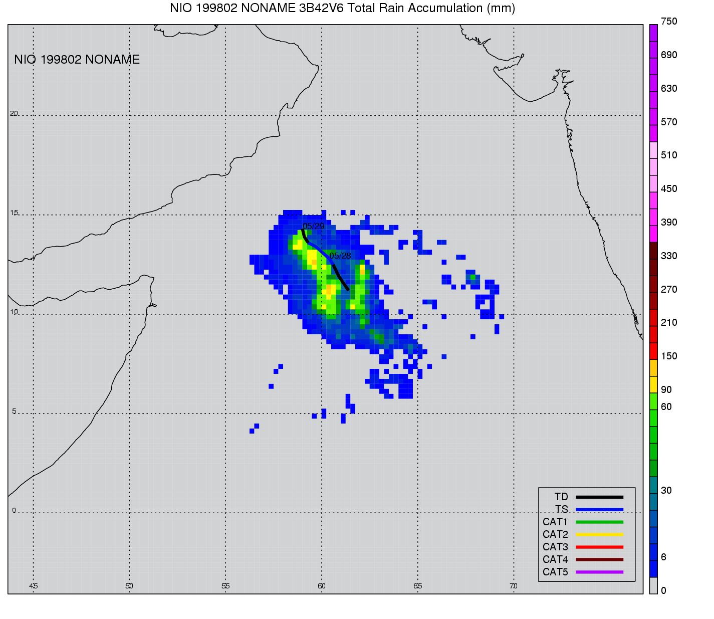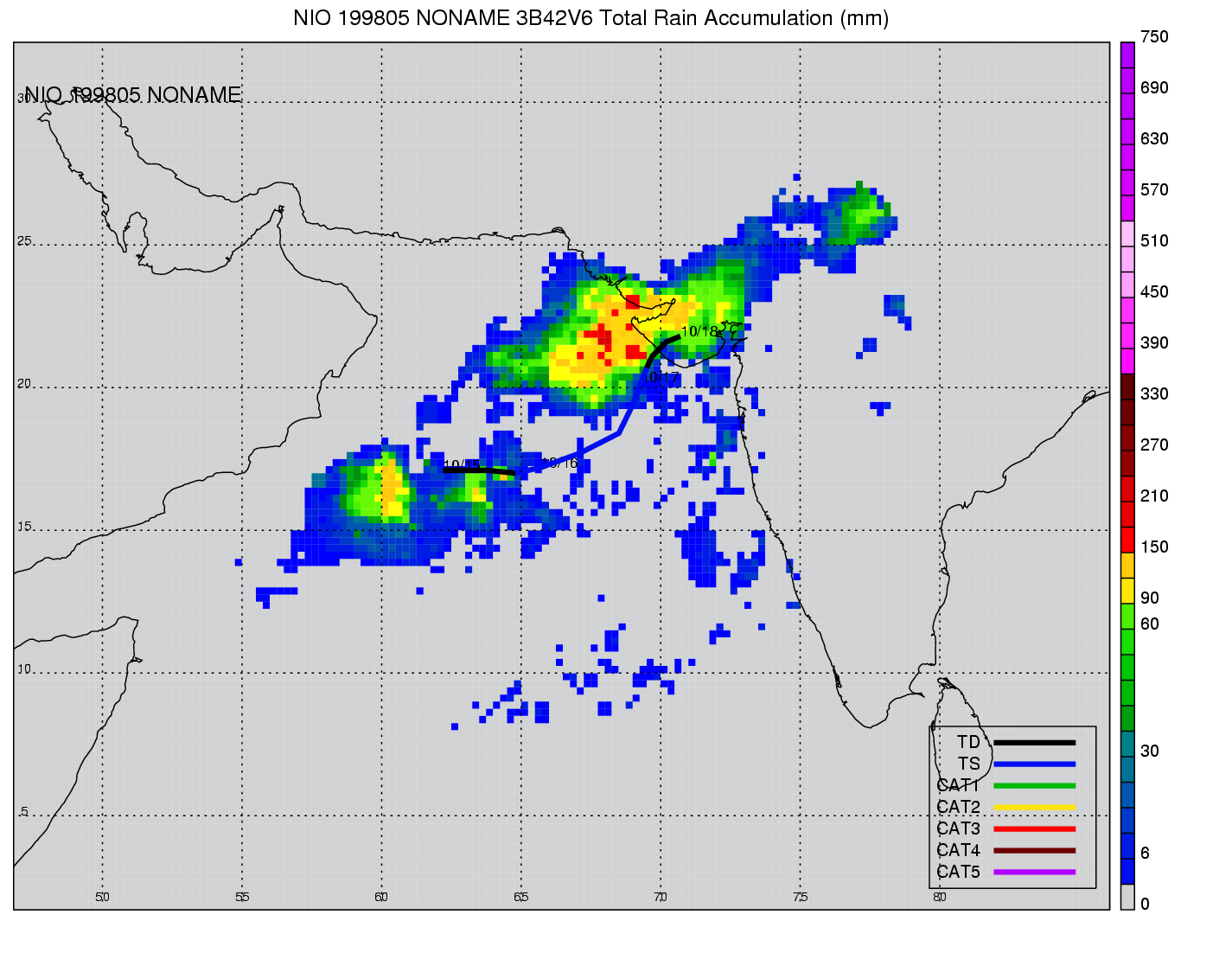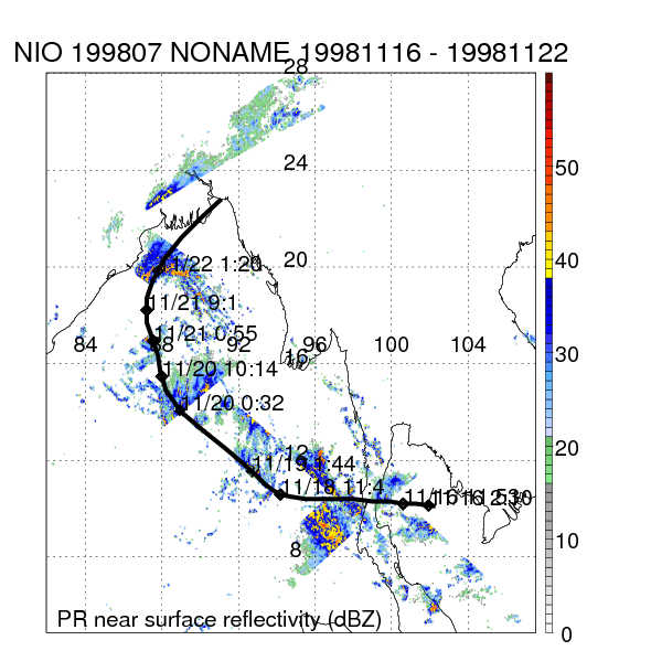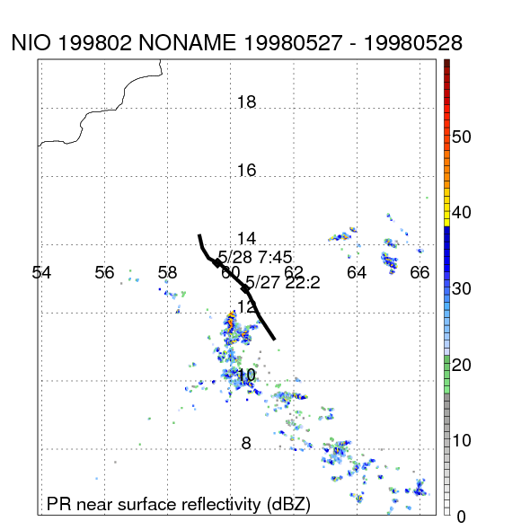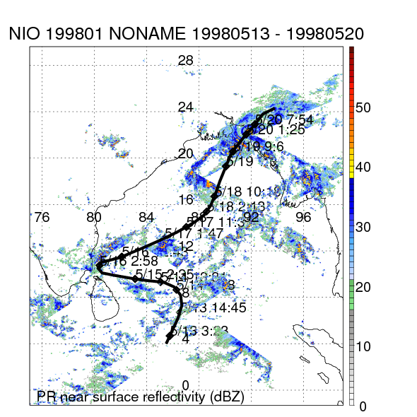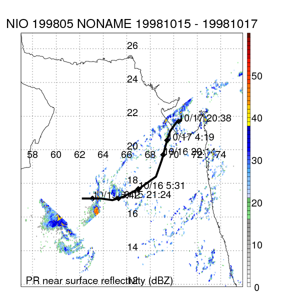 | 5 | 199805 | NONAME | 19981015 - 19981017 | -9999999 | 35 | 6 | 67 | snapshots | rain accumulation |