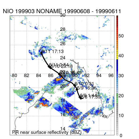 | 3 | 199903 | NONAME | 19990608 - 19990611 | -9999999 | 35 | 8 | 50 | snapshots | rain accumulation |