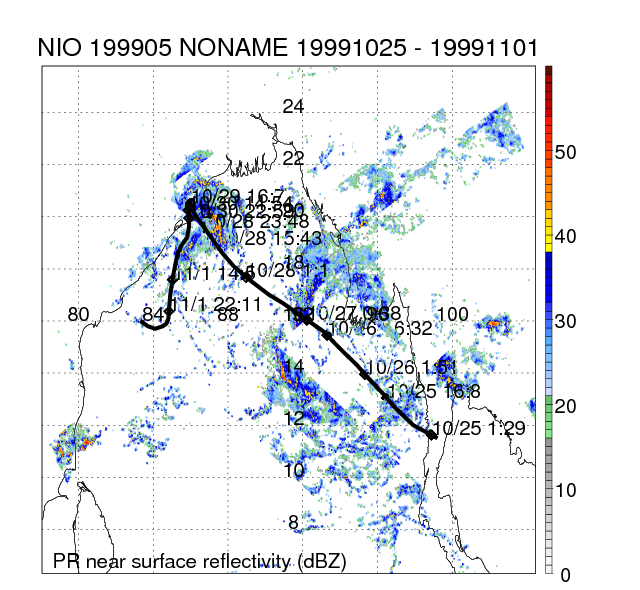 | 4 | 199904 | NONAME | 19991015 - 19991018 | -9999999 | 120 | 7 | 69 | snapshots | rain accumulation |