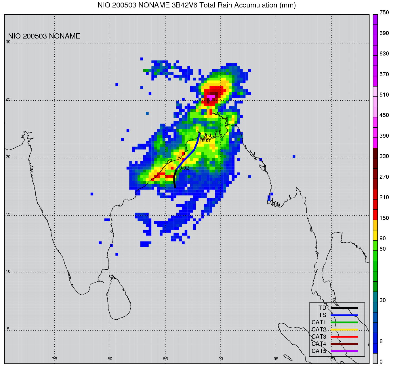 | 2 | 200503 | NONAME | 20051001 - 20051002 | 994 | 40 | 4 | 32 | snapshots | rain accumulation |