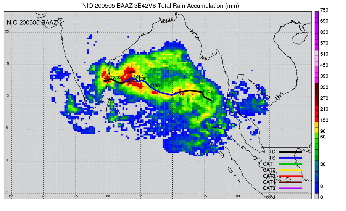 | 4 | 200505 | BAAZ | 20051126 - 20051203 | 991 | 45 | 13 | 91 | snapshots | rain accumulation |