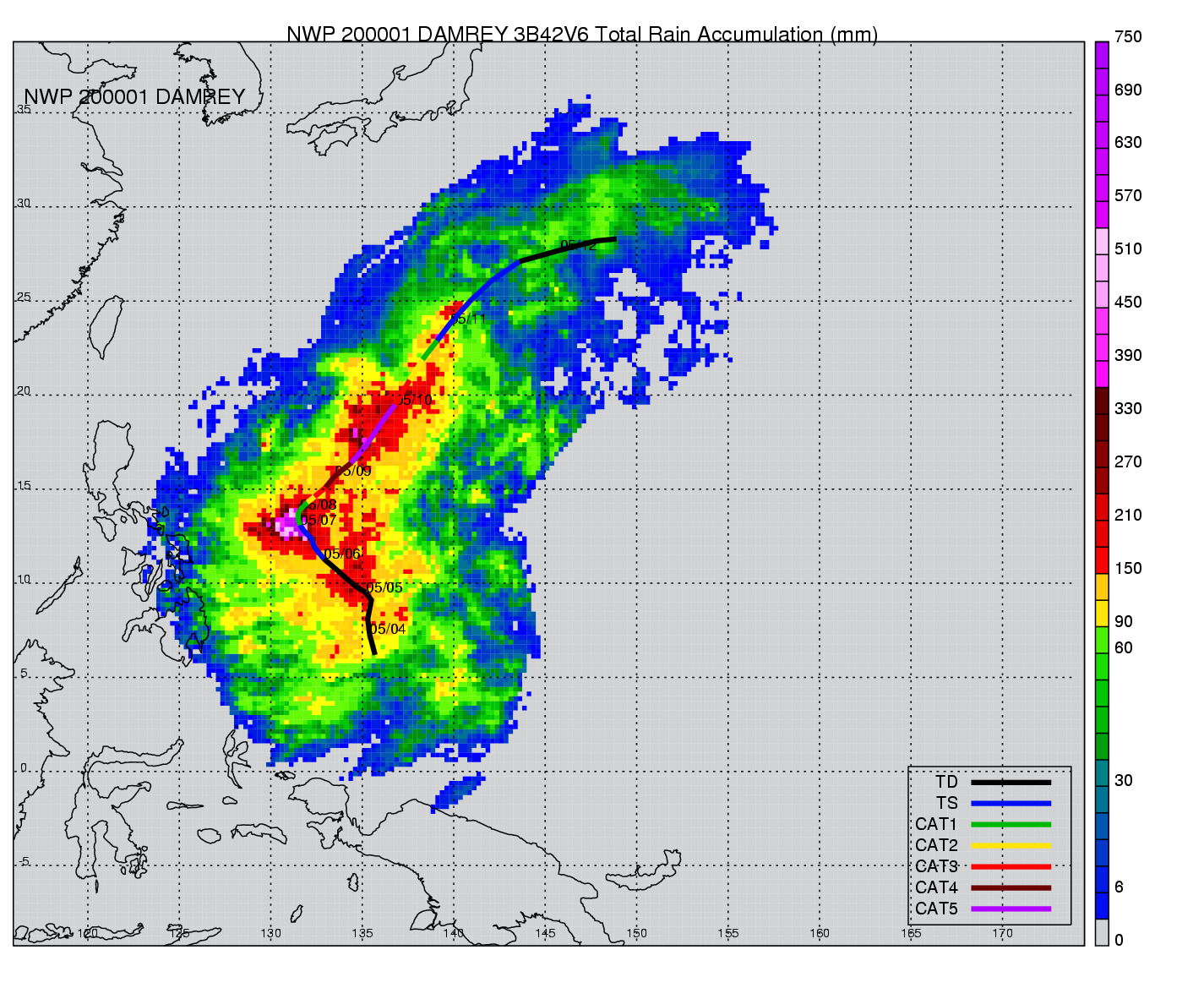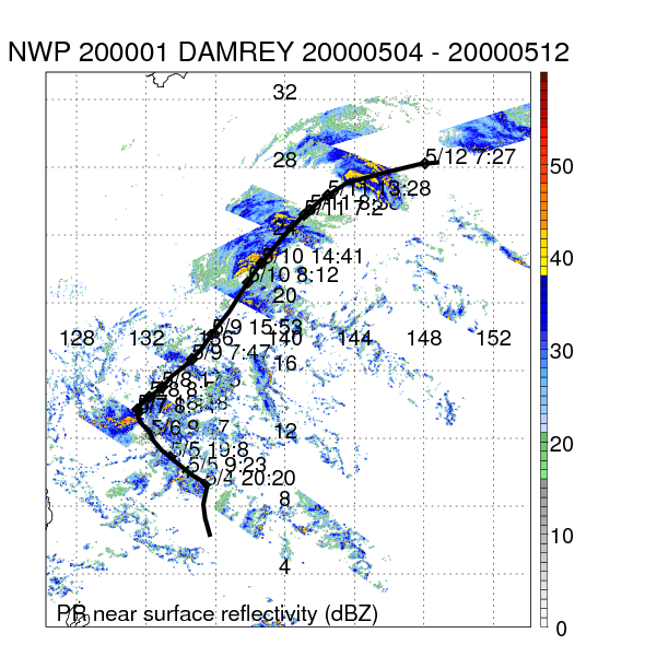 | 1 | 200001 | DAMREY | 20000504 - 20000512 | -9999999 | 155 | 16 | 107 | snapshots | rain accumulation |