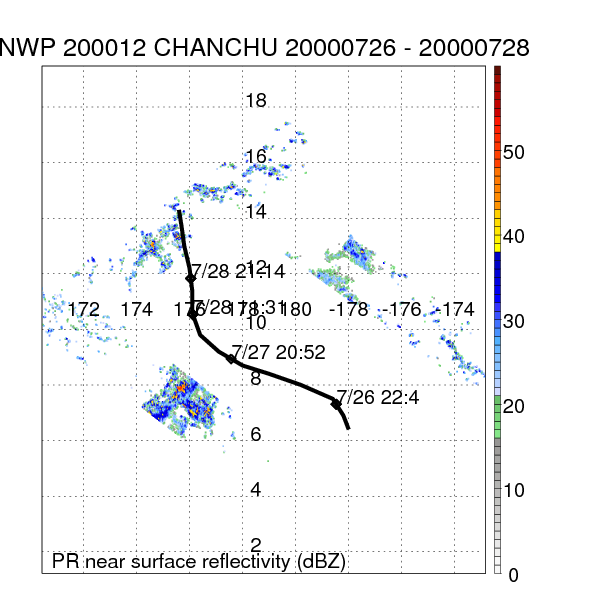 | 7 | 200012 | CHANCHU | 20000726 - 20000728 | -9999999 | 35 | 4 | 30 | snapshots | rain accumulation |