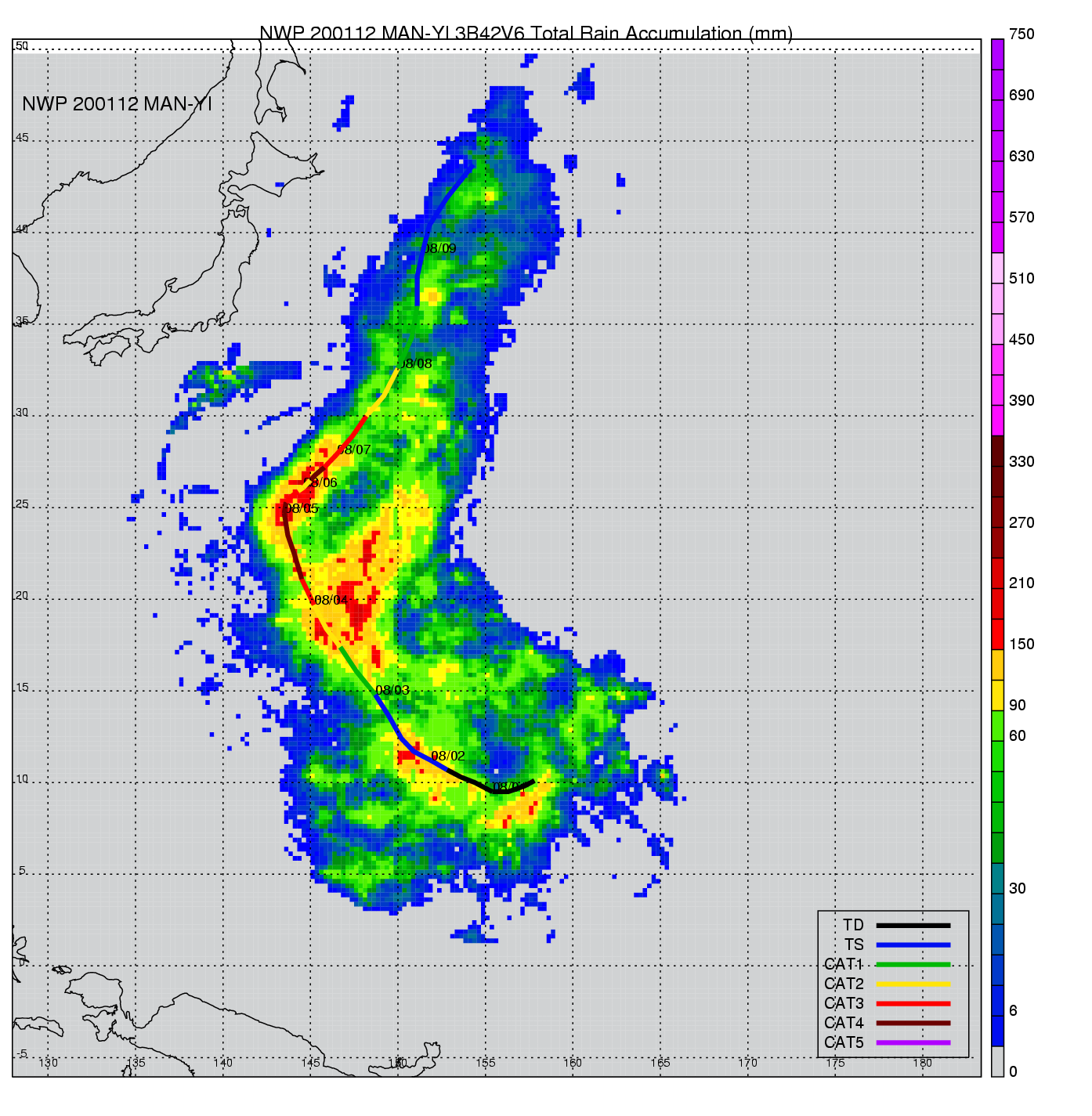 | 10 | 200112 | MAN-YI | 20010731 - 20010807 | 922 | 120 | 14 | 99 | snapshots | rain accumulation |