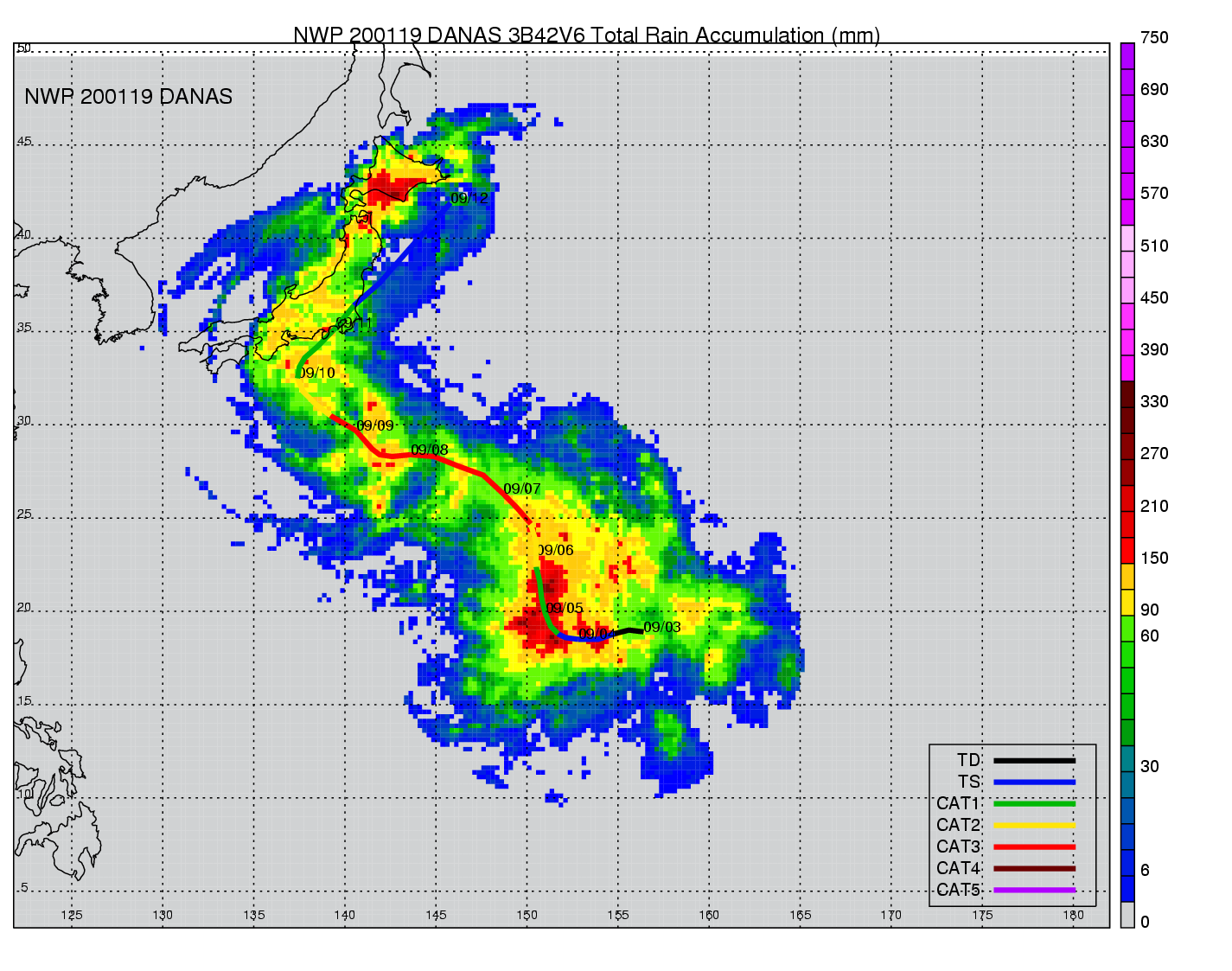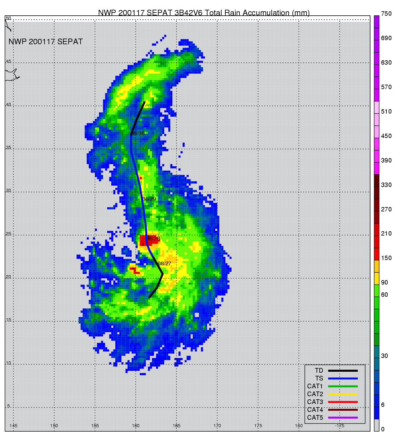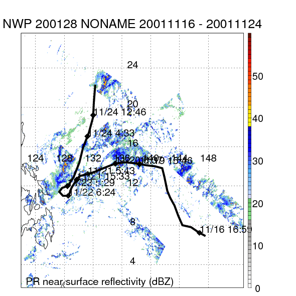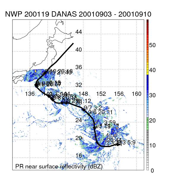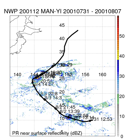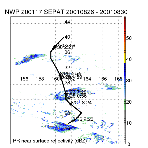 | 12 | 200117 | SEPAT | 20010826 - 20010830 | 991 | 45 | 11 | 65 | snapshots | rain accumulation |