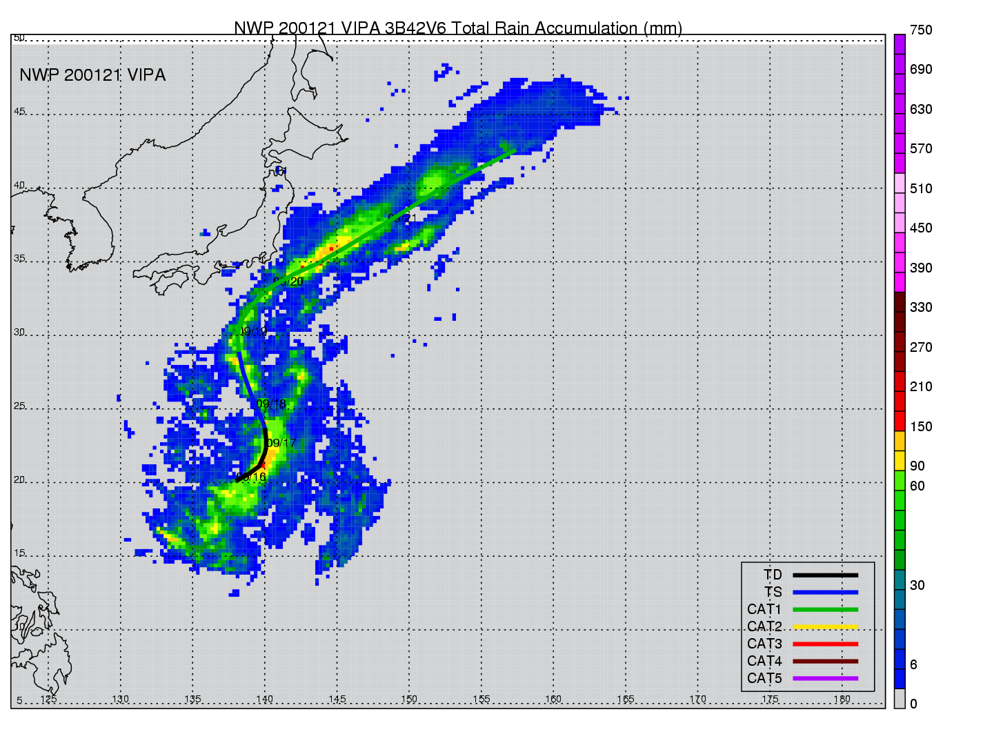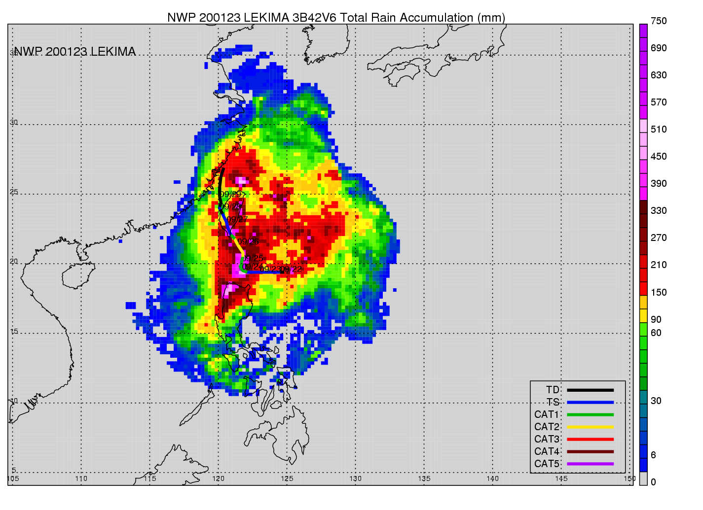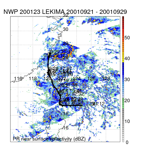 | 18 | 200123 | LEKIMA | 20010921 - 20010929 | 949 | 95 | 18 | 128 | snapshots | rain accumulation |