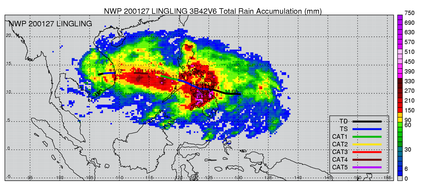 | 22 | 200127 | LINGLING | 20011105 - 20011111 | 927 | 115 | 12 | 86 | snapshots | rain accumulation |