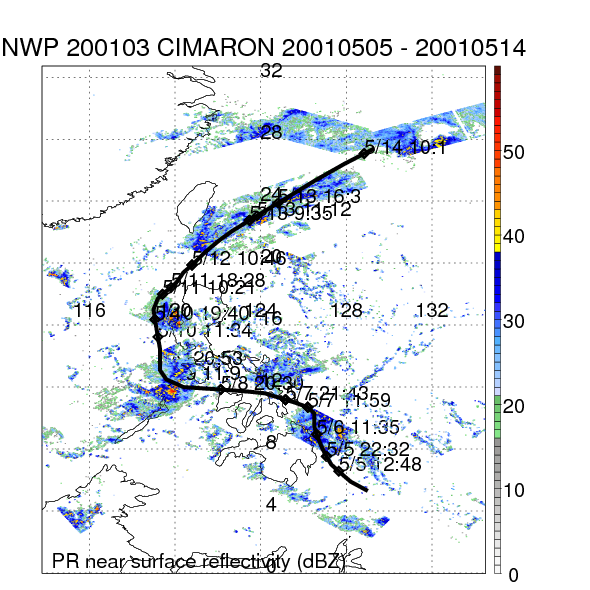 | 7 | 200109 | KONG-REY | 20010721 - 20010728 | 958 | 85 | 23 | 167 | snapshots | rain accumulation |