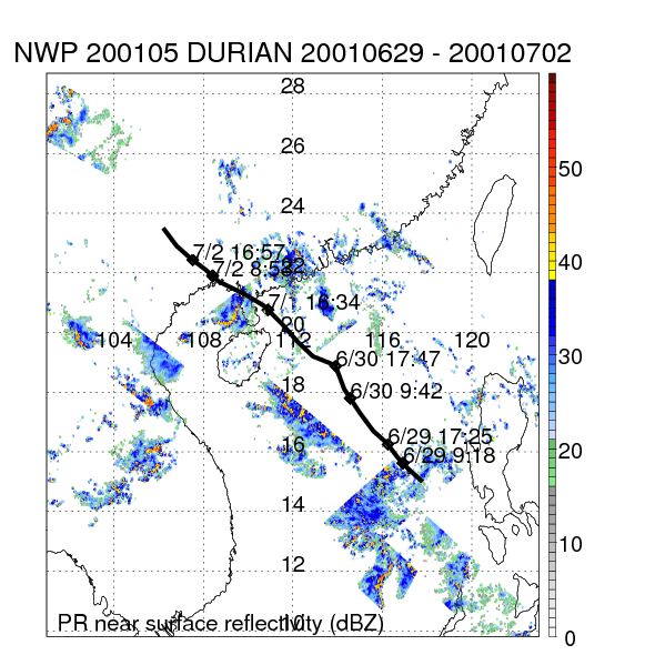 | 4 | 200105 | DURIAN | 20010629 - 20010702 | 967 | 75 | 8 | 52 | snapshots | rain accumulation |
