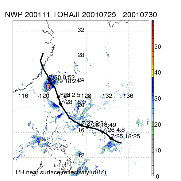 | 9 | 200111 | TORAJI | 20010725 - 20010730 | 944 | 100 | 10 | 90 | snapshots | rain accumulation |