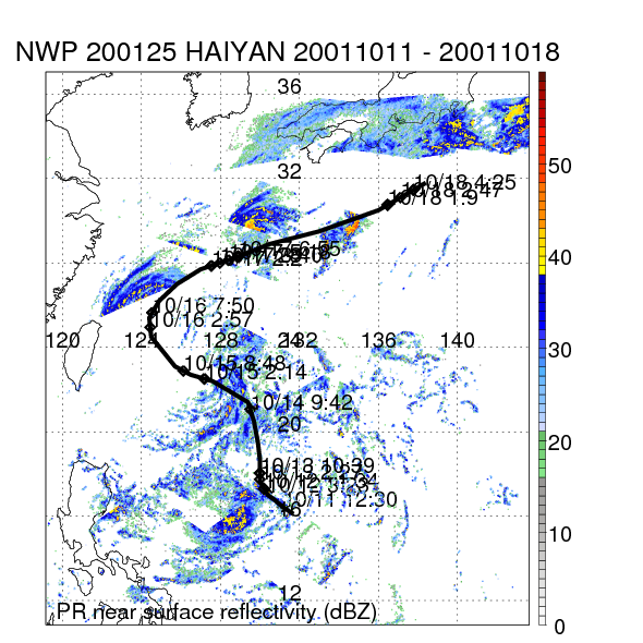| 20 | 200125 | HAIYAN | 20011011 - 20011018 | 954 | 90 | 19 | 102 | snapshots | rain accumulation |