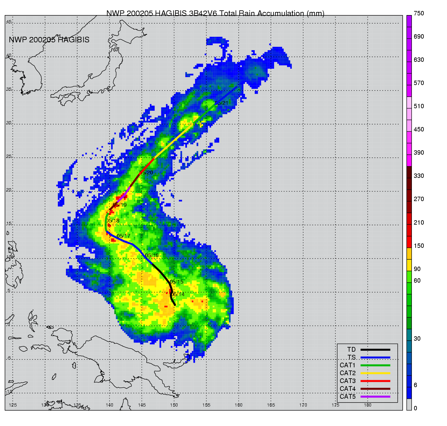 | 3 | 200205 | HAGIBIS | 20020513 - 20020520 | 898 | 140 | 17 | 77 | snapshots | rain accumulation |