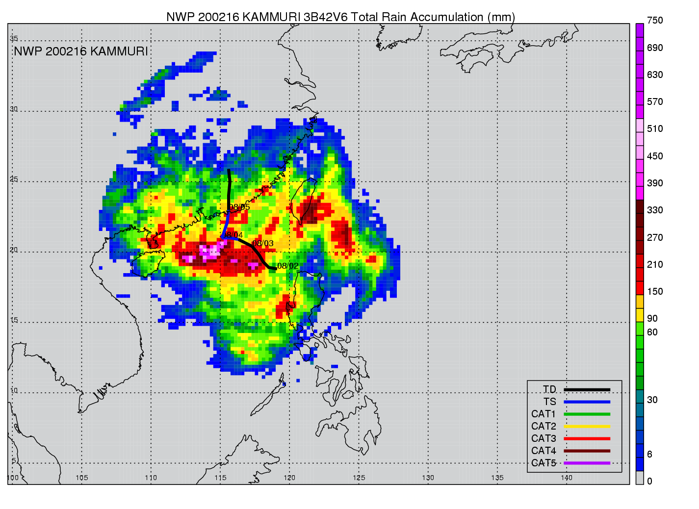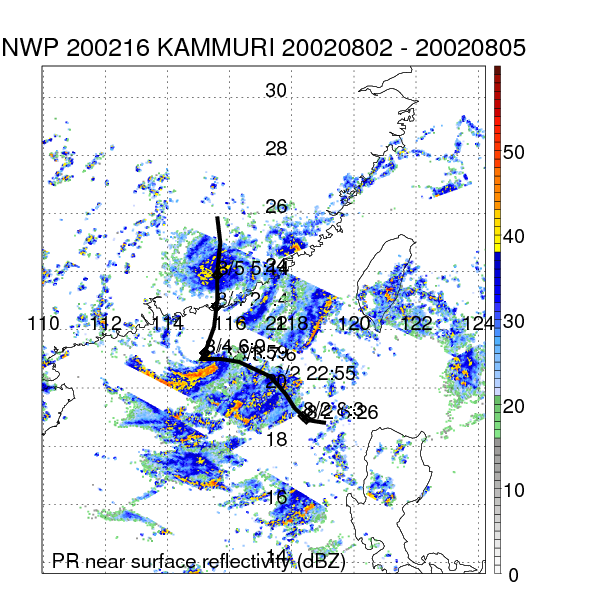 | 12 | 200216 | KAMMURI | 20020802 - 20020805 | 987 | 50 | 8 | 61 | snapshots | rain accumulation |