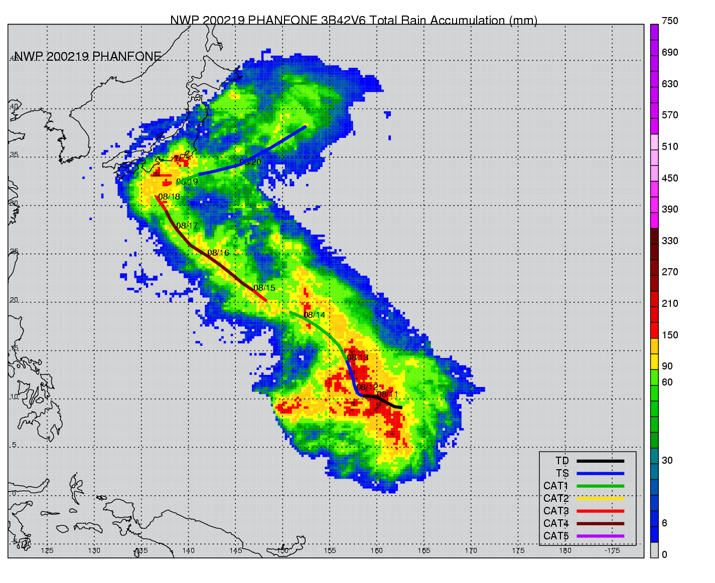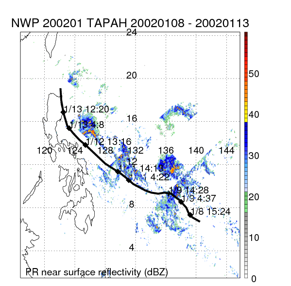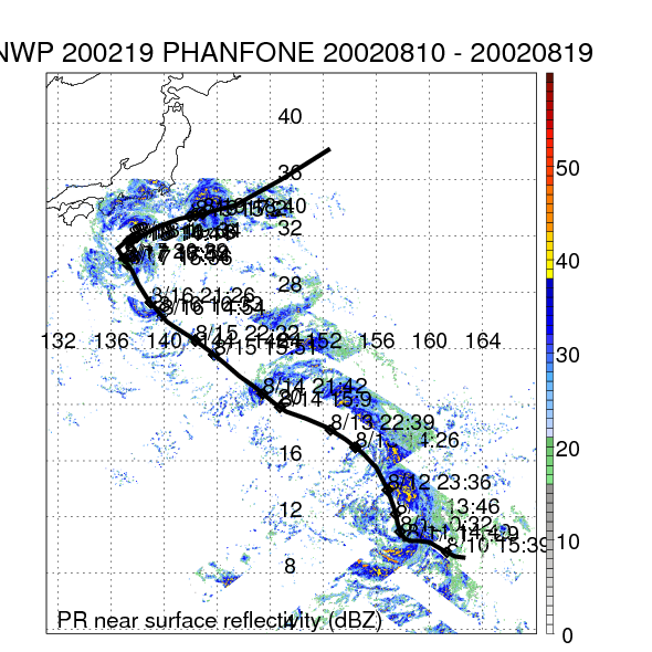| 14 | 200219 | PHANFONE | 20020810 - 20020819 | 904 | 135 | 26 | 112 | snapshots | rain accumulation |