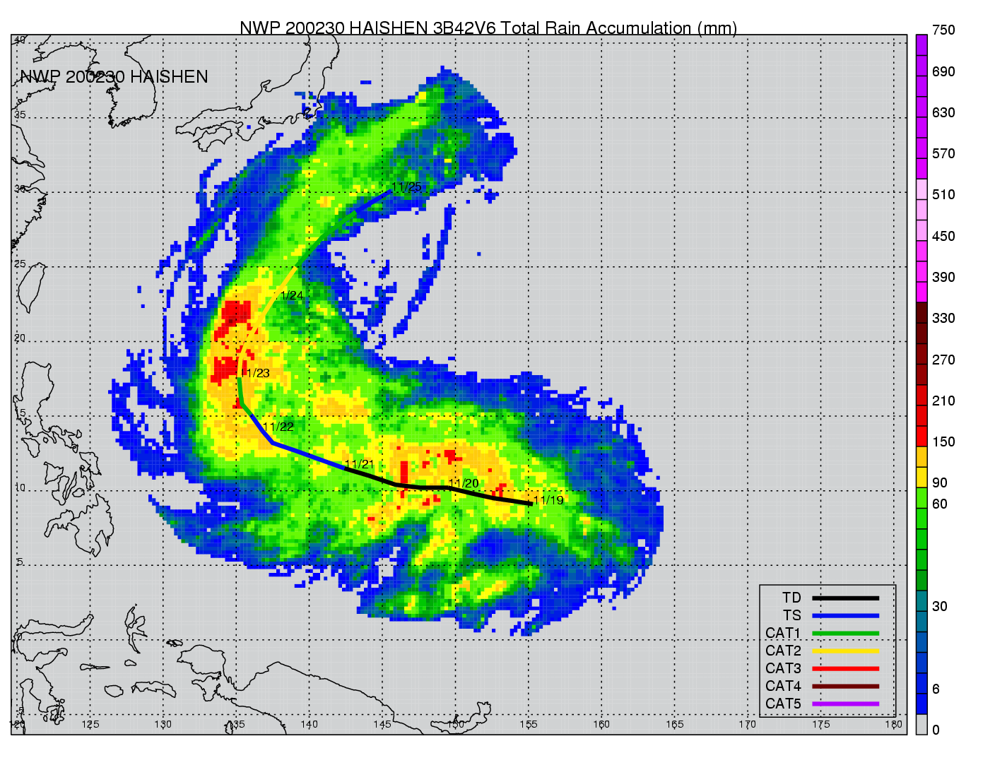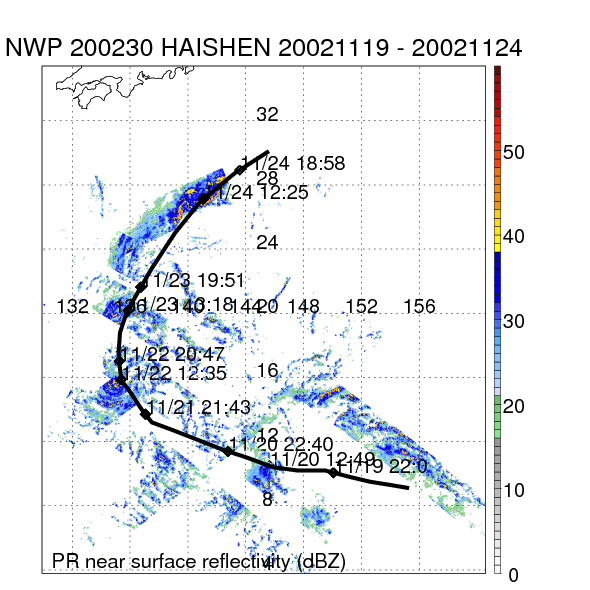 | 23 | 200230 | HAISHEN | 20021119 - 20021124 | 949 | 95 | 12 | 63 | snapshots | rain accumulation |