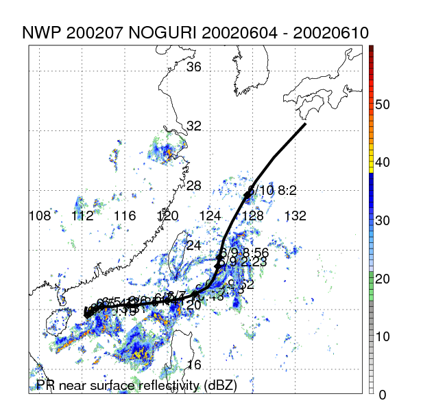 | 4 | 200207 | NOGURI | 20020604 - 20020610 | 958 | 85 | 13 | 82 | snapshots | rain accumulation |