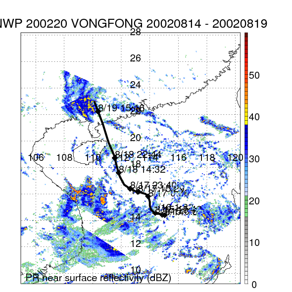 | 15 | 200220 | VONGFONG | 20020814 - 20020819 | 984 | 55 | 10 | 92 | snapshots | rain accumulation |