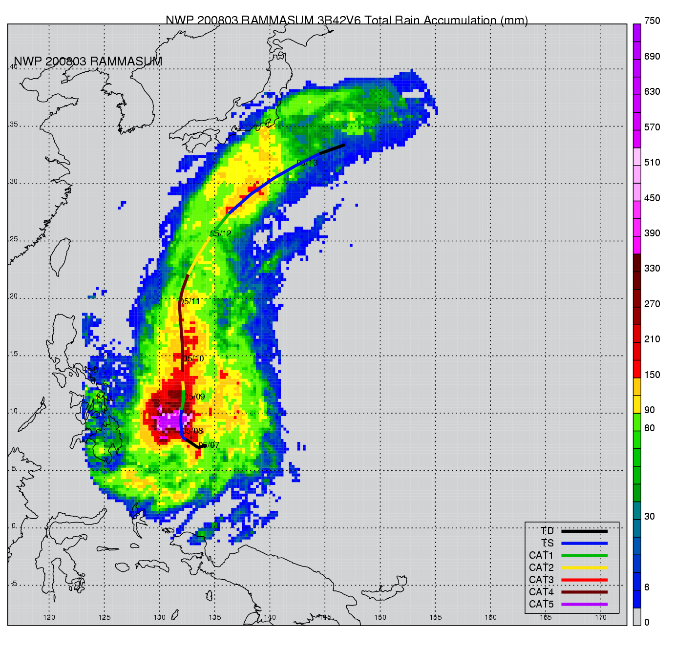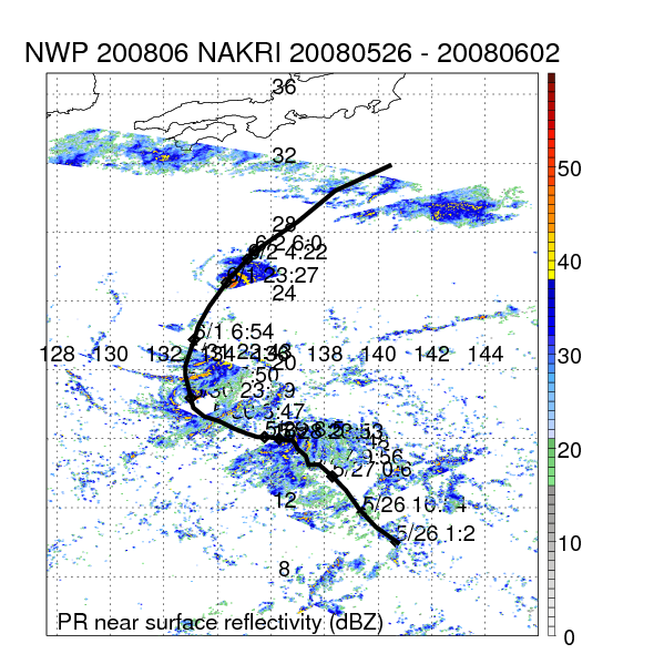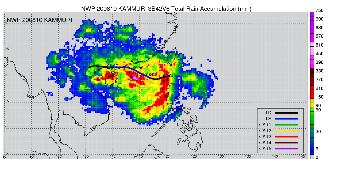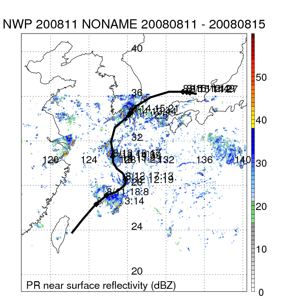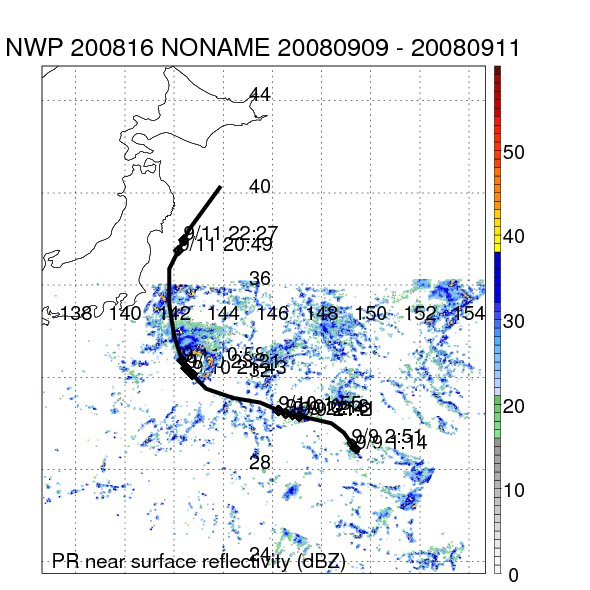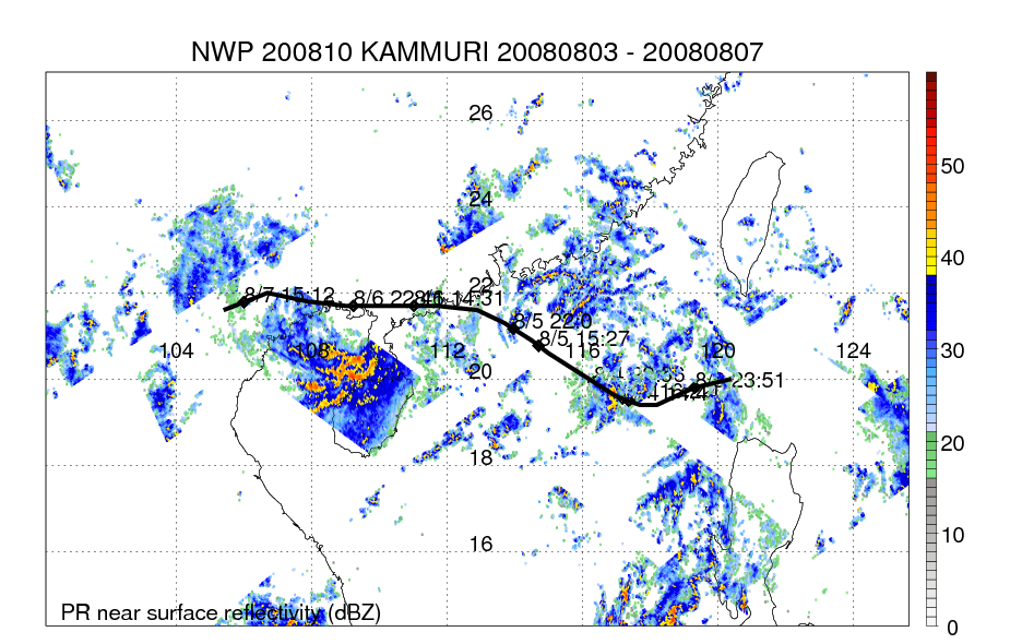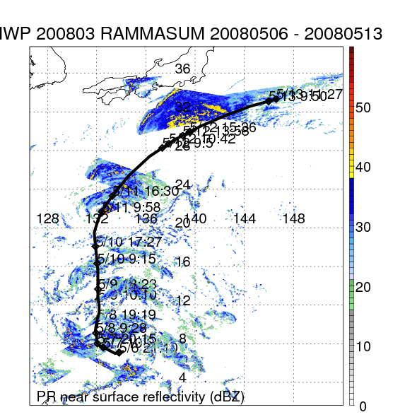 | 10 | 200810 | KAMMURI | 20080803 - 20080807 | 985 | 50 | 9 | 60 | snapshots | rain accumulation |