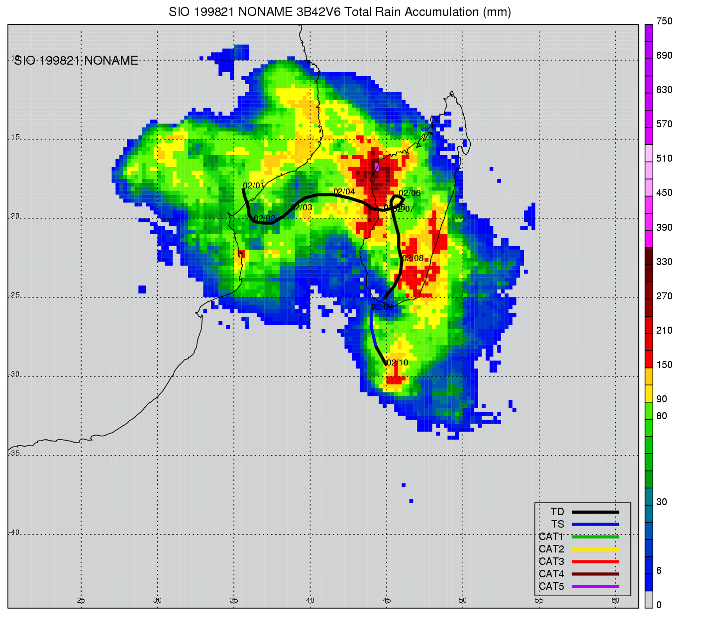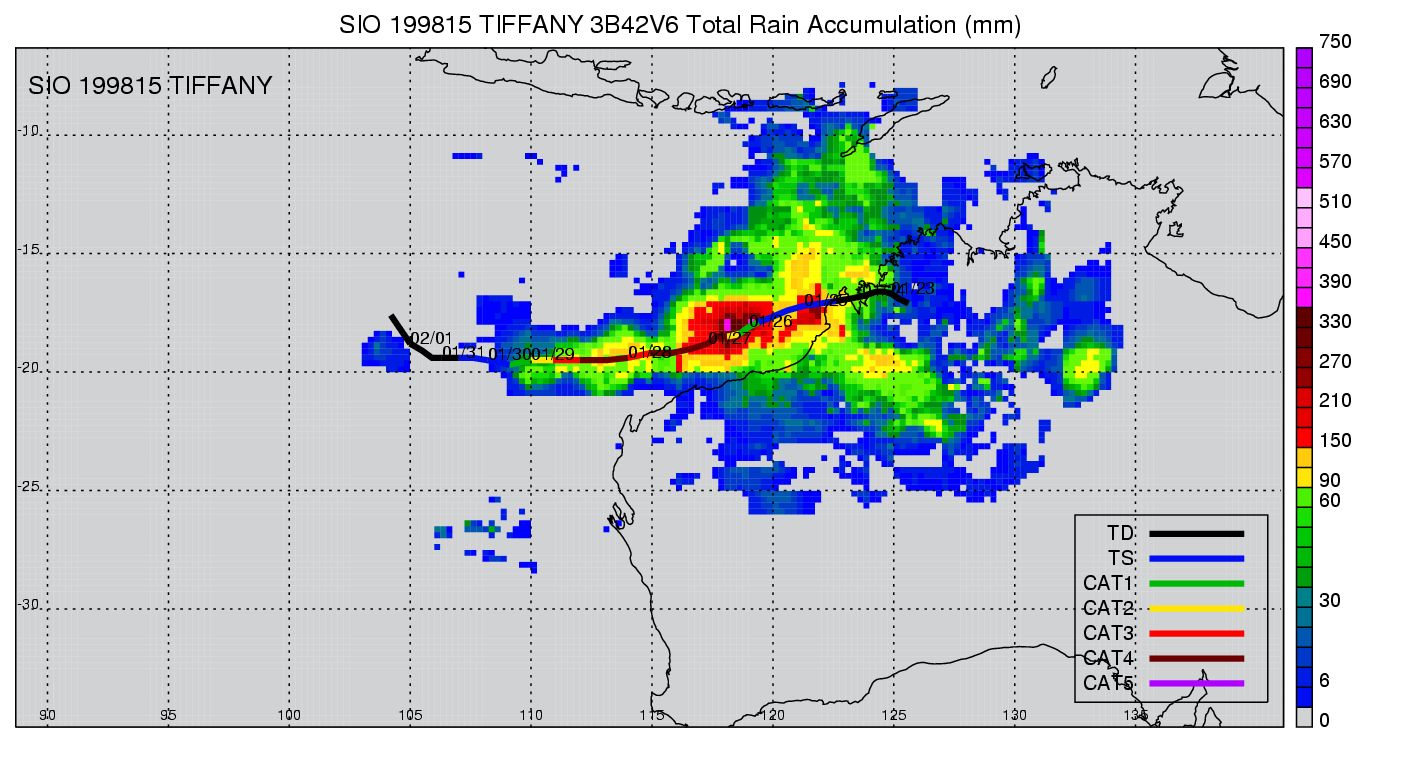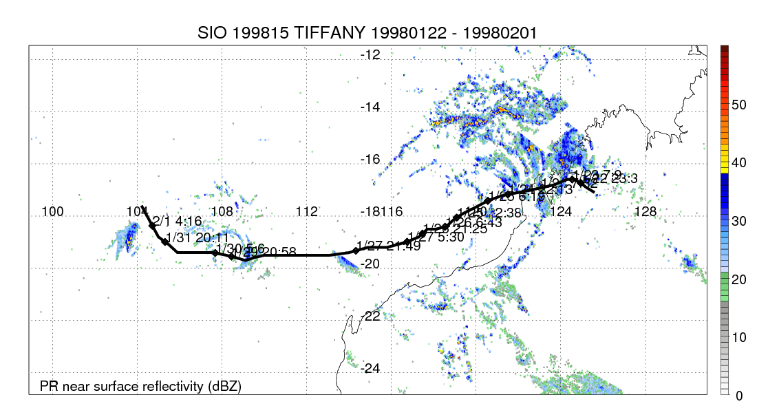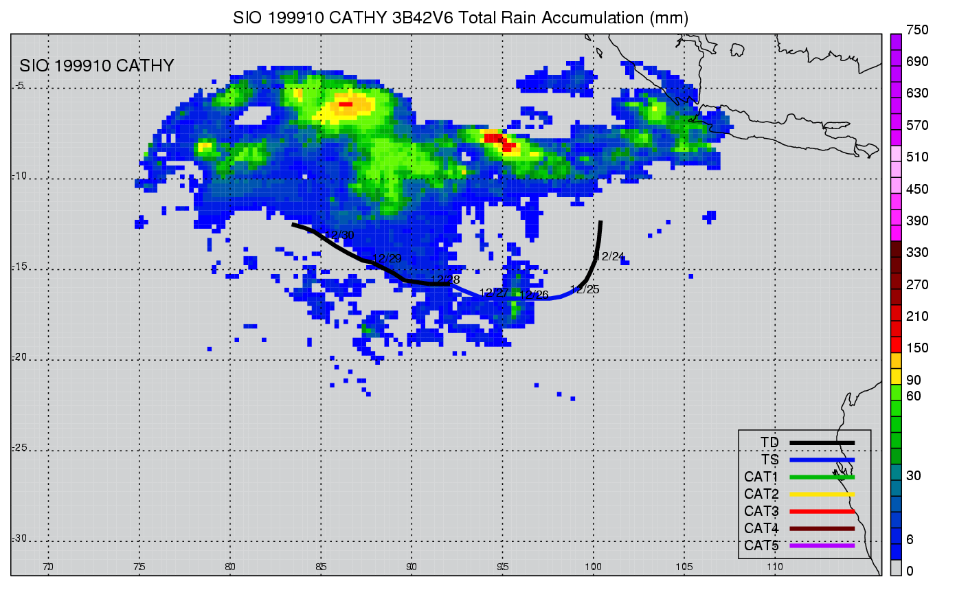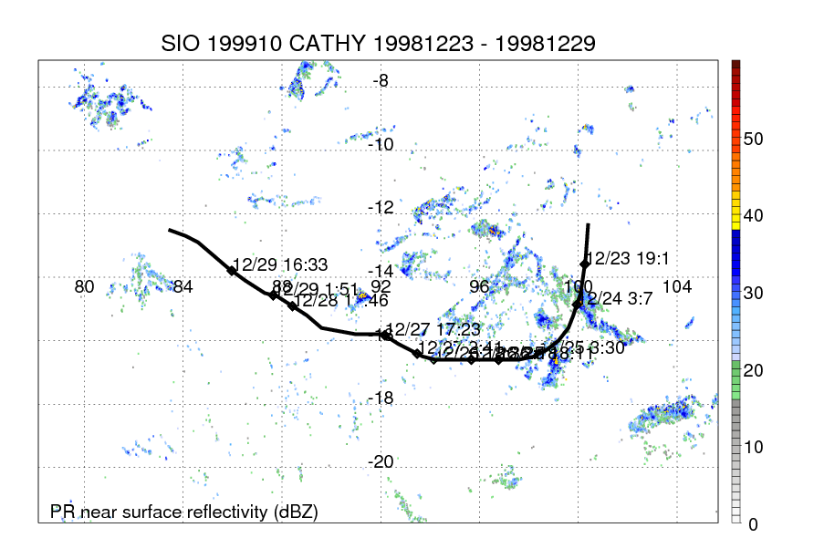 | 21 | 199910 | CATHY | 19981223 - 19981229 | -9999999 | 40 | 11 | 87 | snapshots | rain accumulation |